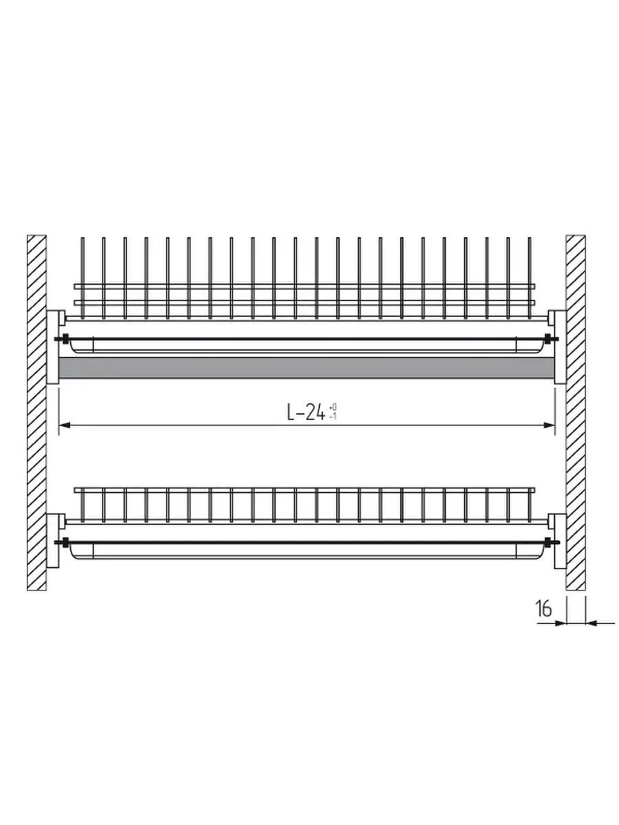 Сушилка для посуды к шкаф кухонный 2-уровневая в базу 800 с стандартными стенками 16 мм, с рамкой, поддон 1 шт. (толстый пластик). Внутренний размер 768 мм. отделка серая Cушка предназначена в шкаф без дна, должна быть вентиляция. Сушилка имеет рамку что позволяет устанавливать в секцию без дна. Сушки этого бренда уже давно на рынке, и успели себя зарекомендовать на Российском рынке. Inoxa - это итальянский бренд Inoxa производит кухонные аксессуары из металлического прута, которые отвечают современным требованиям практичности, универсальности и удобства. Основана в 1998 году в Италии. Помимо качества, отличаются также поддоном, в сушках Inoxa поддоны очень практичные. Они изготовлены либо из плотного пластика. Они белые, матовые, с загнутыми по длине бортиками, которые образуют ребра жесткости, препятствующие изгибам поддона