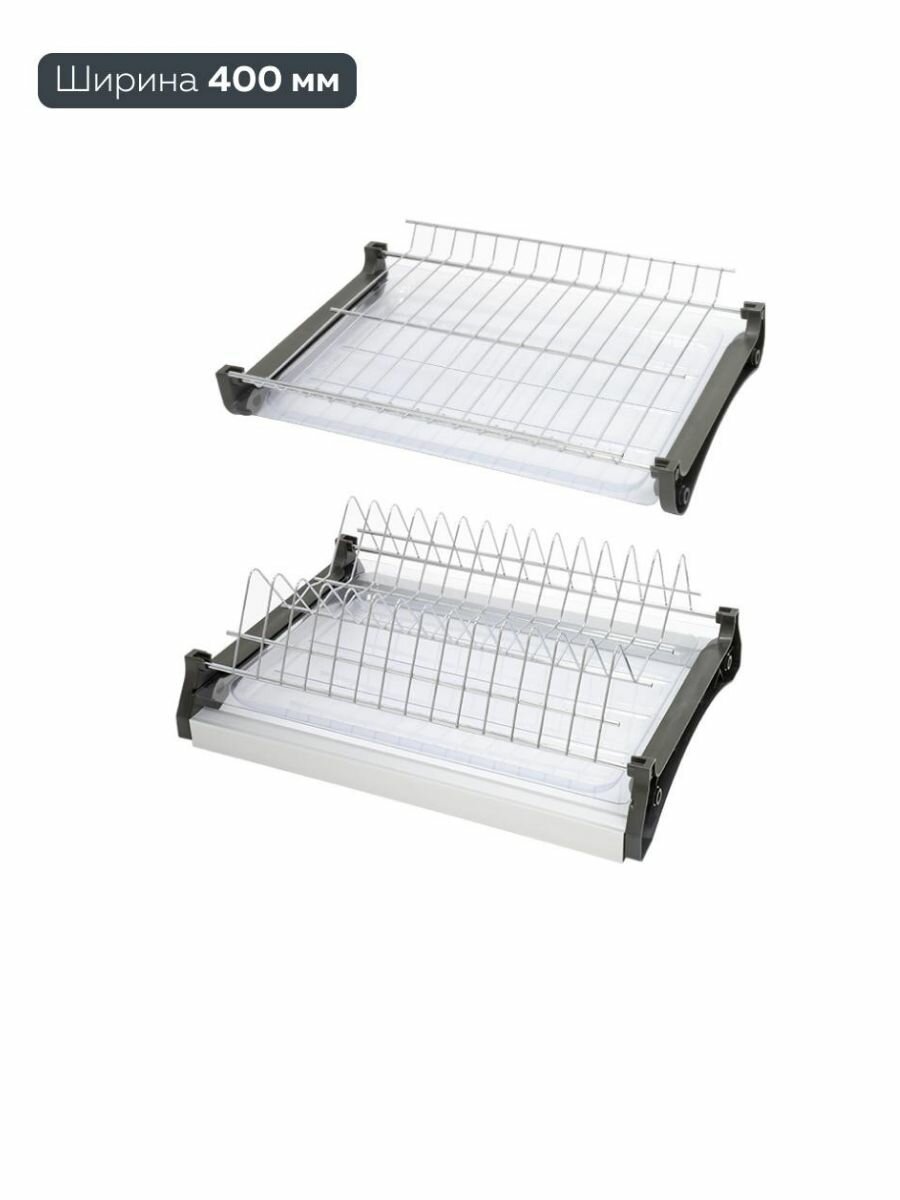 Сушилка для посуды с алюминиевой рамкой в шкаф 400 мм, цвет хром с 2 поддонами в комплекте: сравнение цен, характеристики, фото, актуальное наличие и цены.