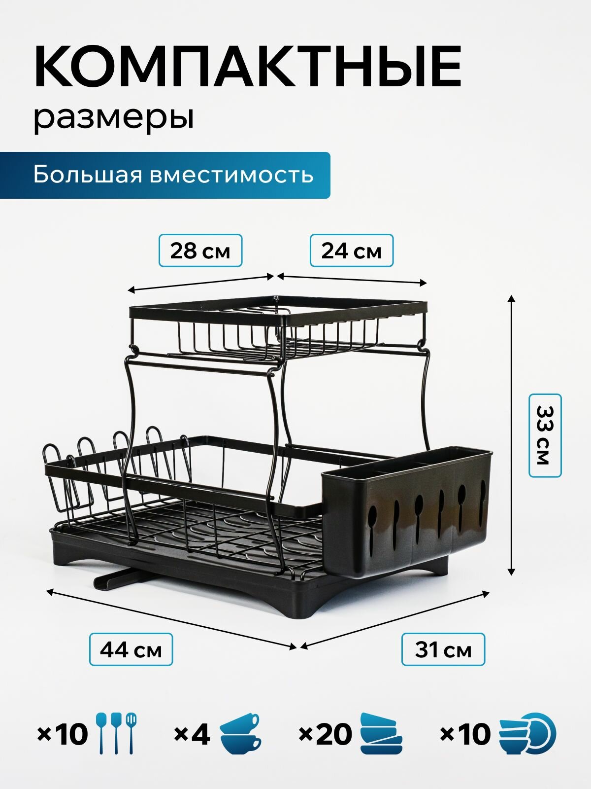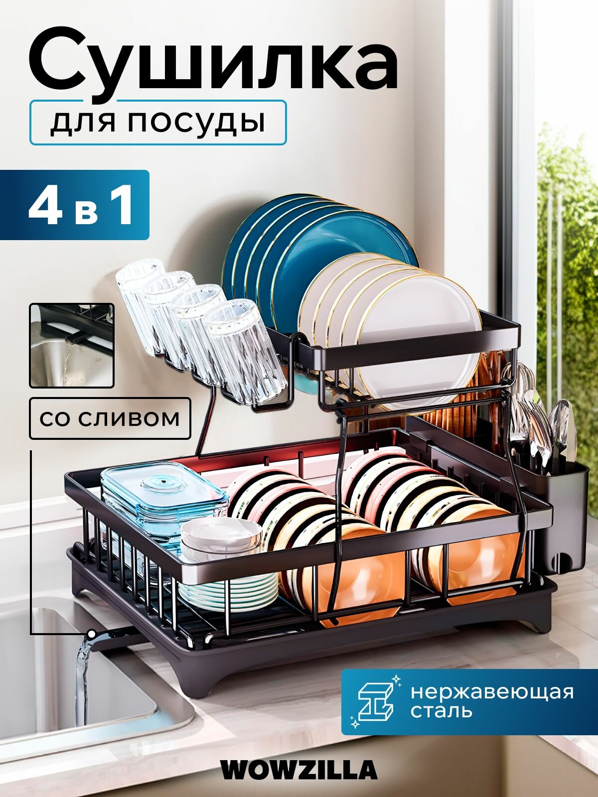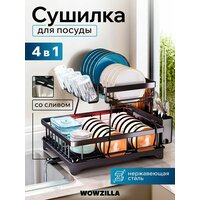 Сушилка для посуды настольная, сушка для посуды Wowzilla, 2 яруса с поддоном, черная: сравнение цен, характеристики, фото, актуальное наличие и цены.