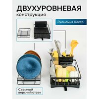 Купить Сушилка для посуды настольная, сушка для посуды Wowzilla, 2 яруса с поддоном, черная с доставкой по всей России.
