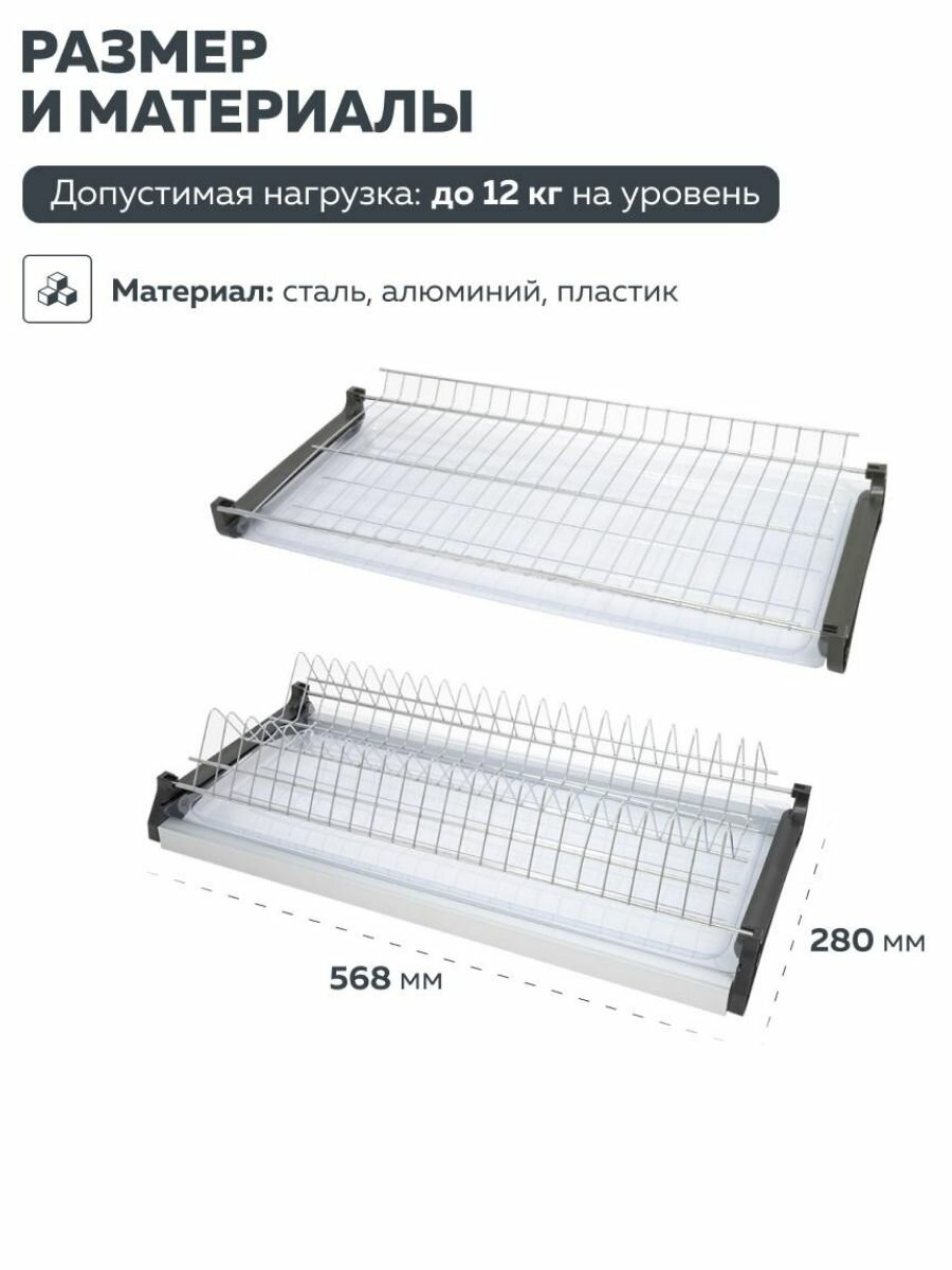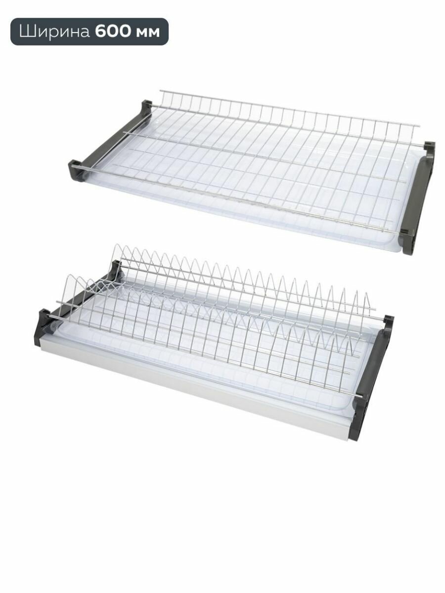 Сушилка для посуды с алюминиевой рамкой в шкаф 600 мм, цвет хром с 2 поддонами в комплекте: сравнение цен, характеристики, фото, актуальное наличие и цены.