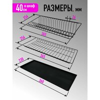 Посудосушитель в кухонный шкаф 40 см (внешний размер шкафа). В комплекте два яруса: для чашек и тарелок с одним пластиковым поддоном. Полкодержатели в комплекте. В наличии имеется три цвета: Белый, Хром, Черный. Размер 365х256 мм.