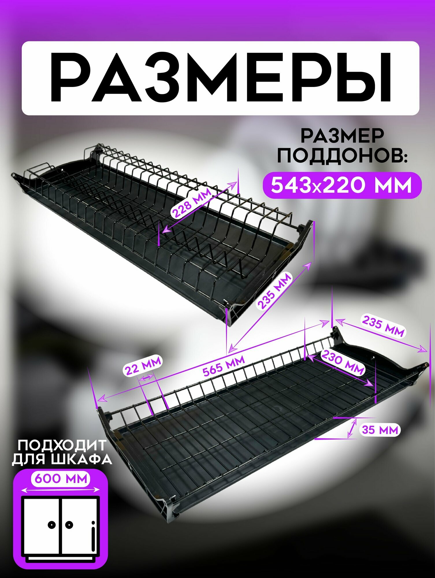 Сушилка для посуды с поддоном, в базу 60 см, цвет Черный