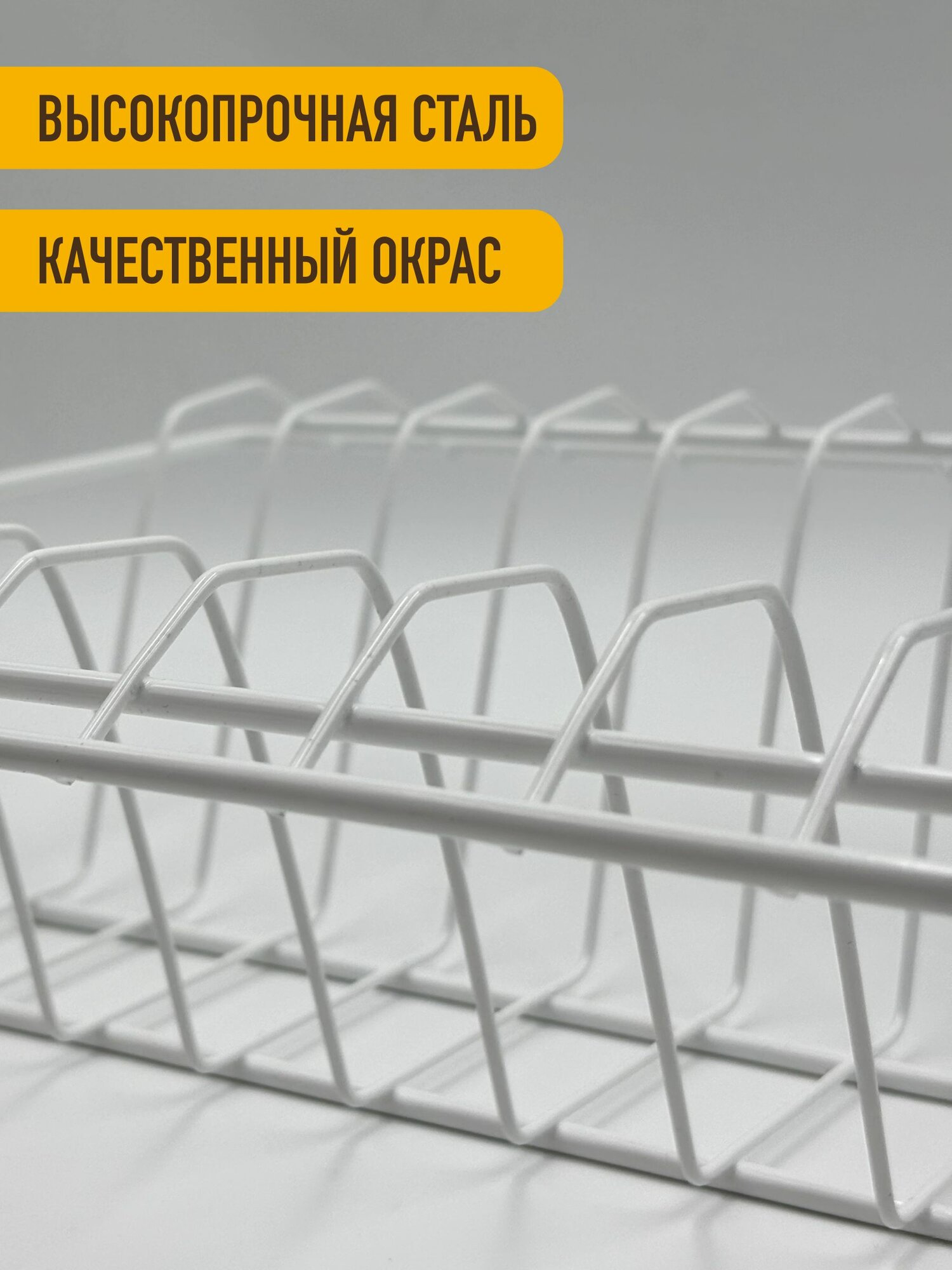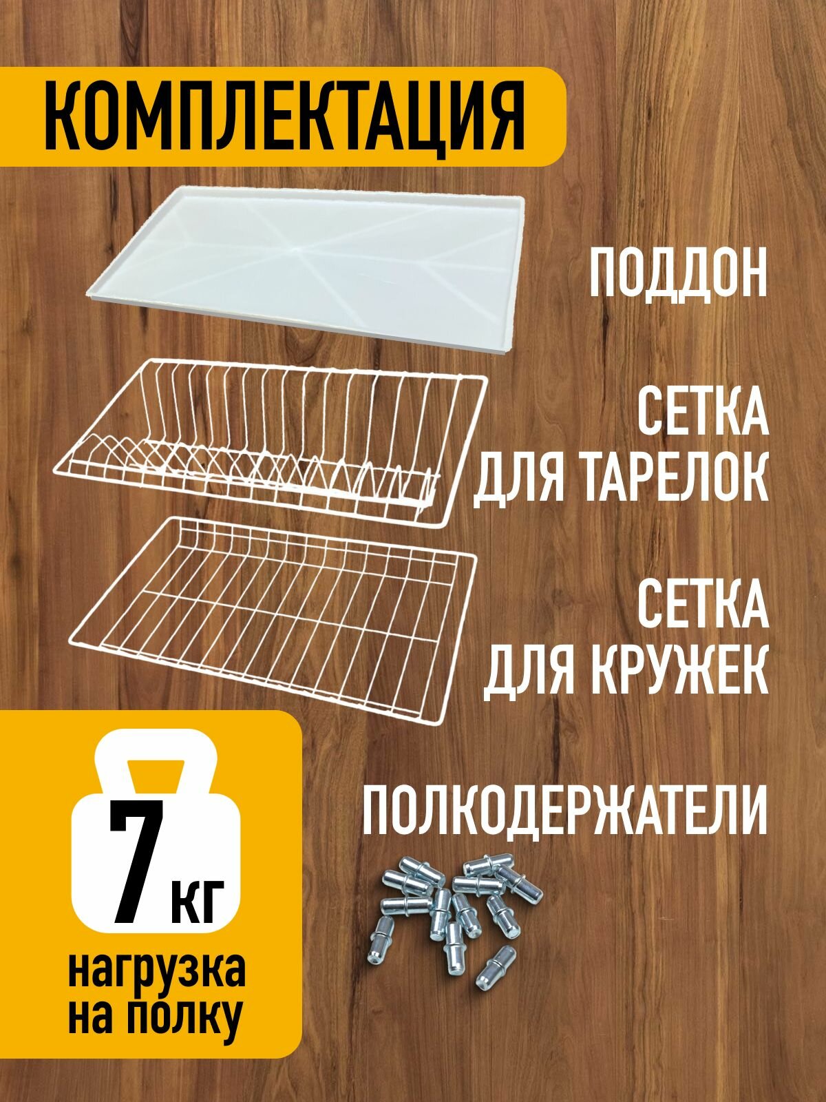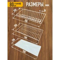 Посудосушитель в кухонный шкаф 80 см (внешний размер шкафа). В комплекте два яруса: для чашек и тарелок с одним пластиковым поддоном. Полкодержатели в комплекте. В наличии имеется три цвета: Белый, Хром, Черный. Размер 765х256 мм.