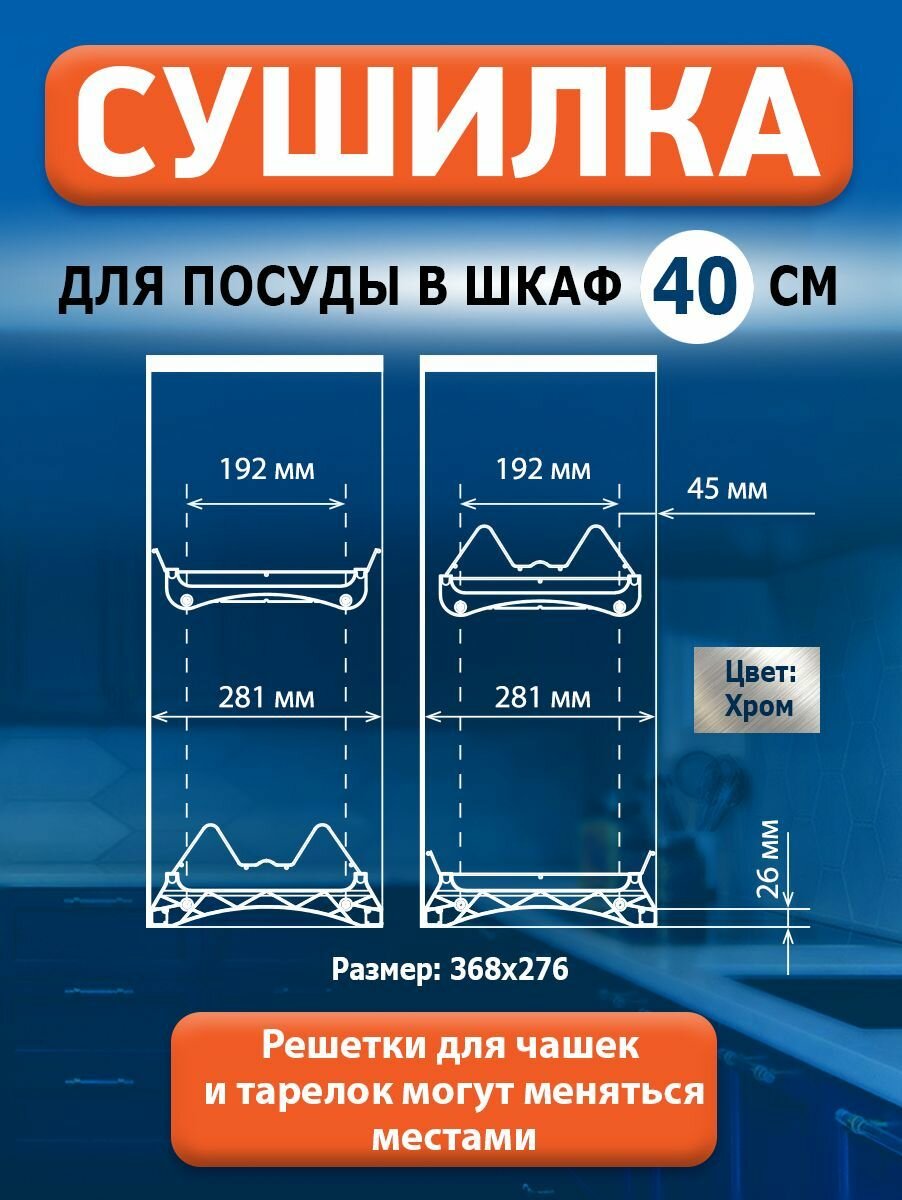 Сушилка для посуды с поддоном в шкаф 40 см, цвет хром: сравнение цен, характеристики, фото, актуальное наличие и цены.