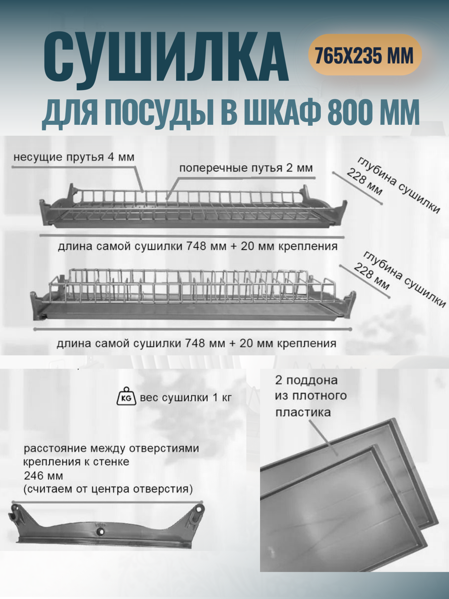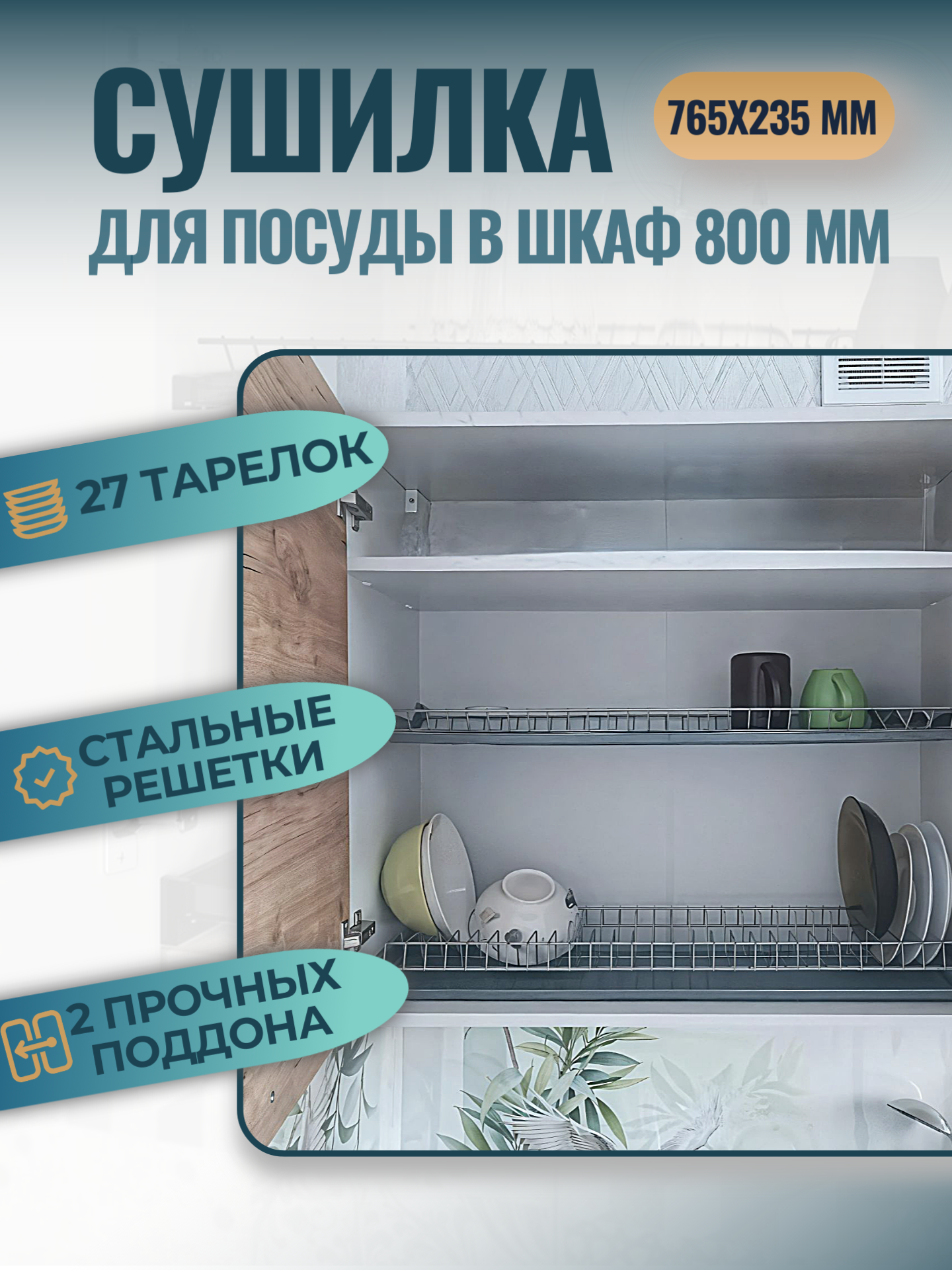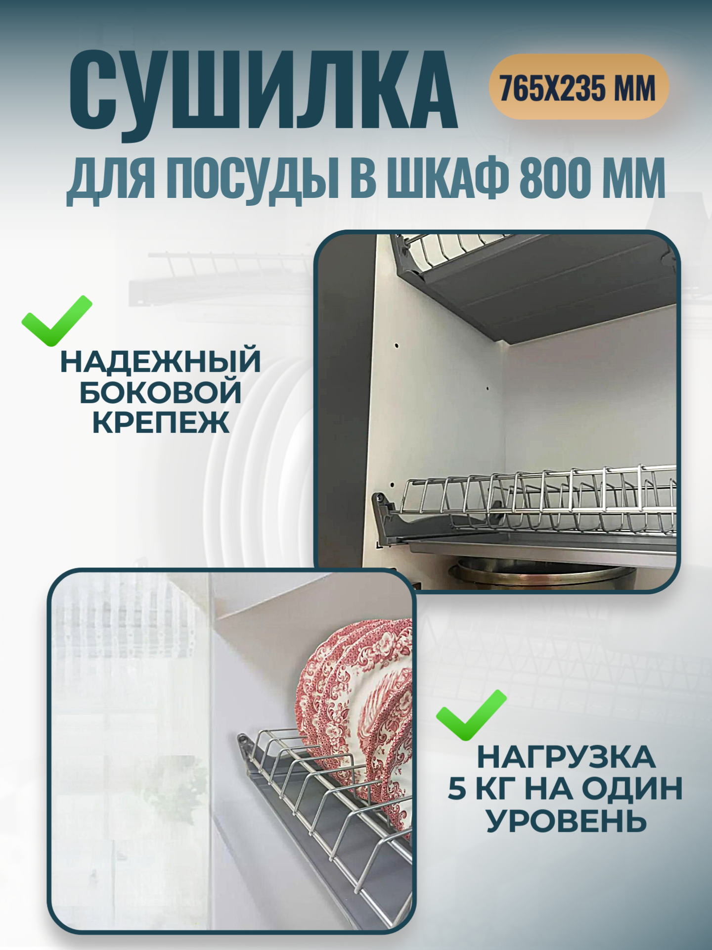 Сушилка для посуды в шкаф 80 см, 765х235мм с поддоном, встраиваемая, матовый хром: сравнение цен, характеристики, фото, актуальное наличие и цены.