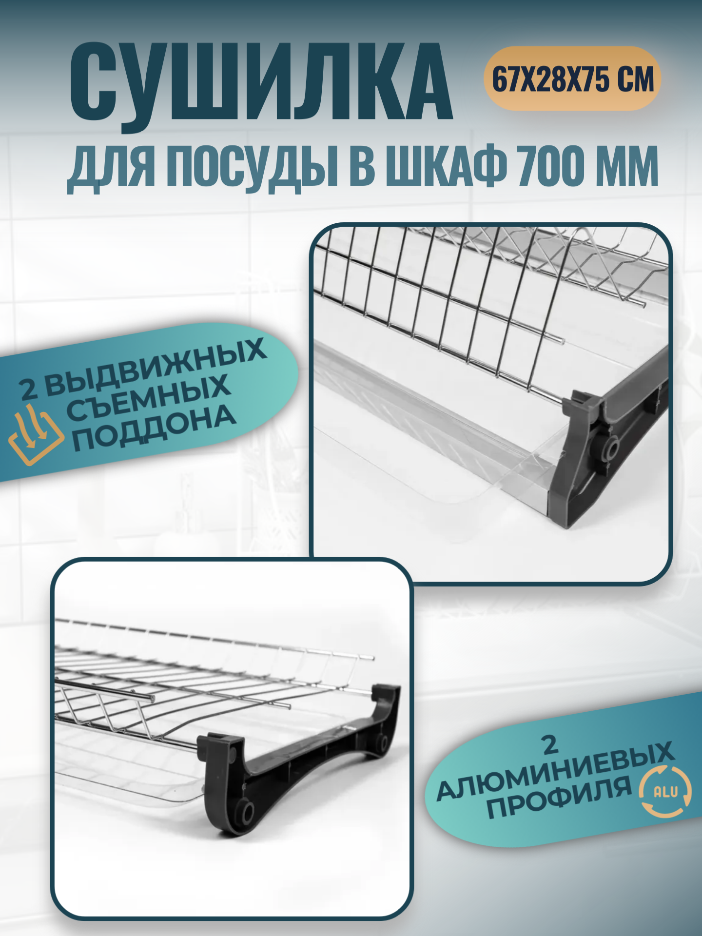 Сушилка для посуды в шкаф 70 см, посудосушитель 668х280х75 (35) мм в кухонный шкаф с поддоном, встраиваемый, хром: сравнение цен, характеристики, фото, актуальное наличие и цены.