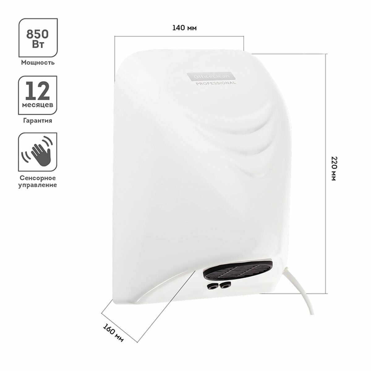 Купить Сушилка для рук электрическая OfficeClean Professional, 850Вт, сенсорный, белый, ABS-пластик (314590) с доставкой по всей России.