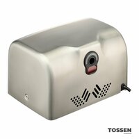 TOSSEN HSG 1310 M - компактная высокоскоростная сушилка из коллекции "Steel line" c корпусом из нержавеющей стали. Производительный мотор, обеспечивающий скорость потока воздуха скоростью 100 м/сек, работающий в паре с мощным нагревательным элементом, обеспечивают быструю сушку рук. Сушилка оснащена системой бесконтактного включения и ультрафиолетовым обеззараживателем воздуха, что обеспечивает высокий уровень гигиеничности. Регулировка скорости потока воздуха, позволяет выбрать оптимальный режим работы как по скорости подачи воздуха, так и по уровню шума. Корпус из высококачественной нержавеющей стали со специальным покрытием, препятствующим появлению на корпусе следов от пальцев, обеспечивает не только долговечность, но и безупречный внешний вид. А также существенно облегчает уход за поверхностью сушилки.