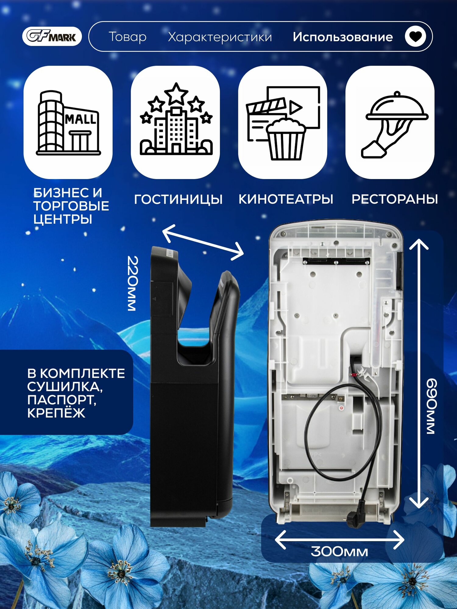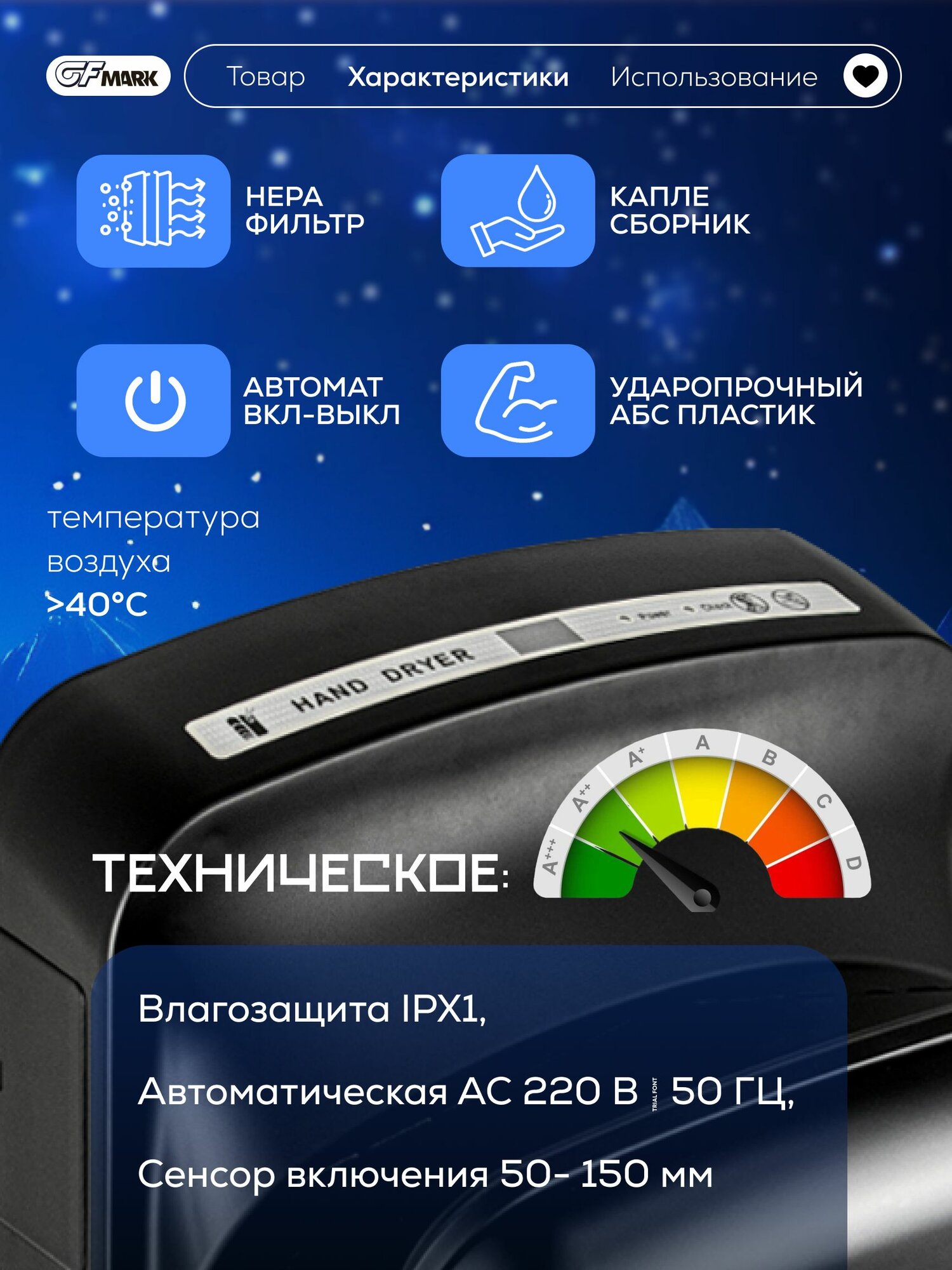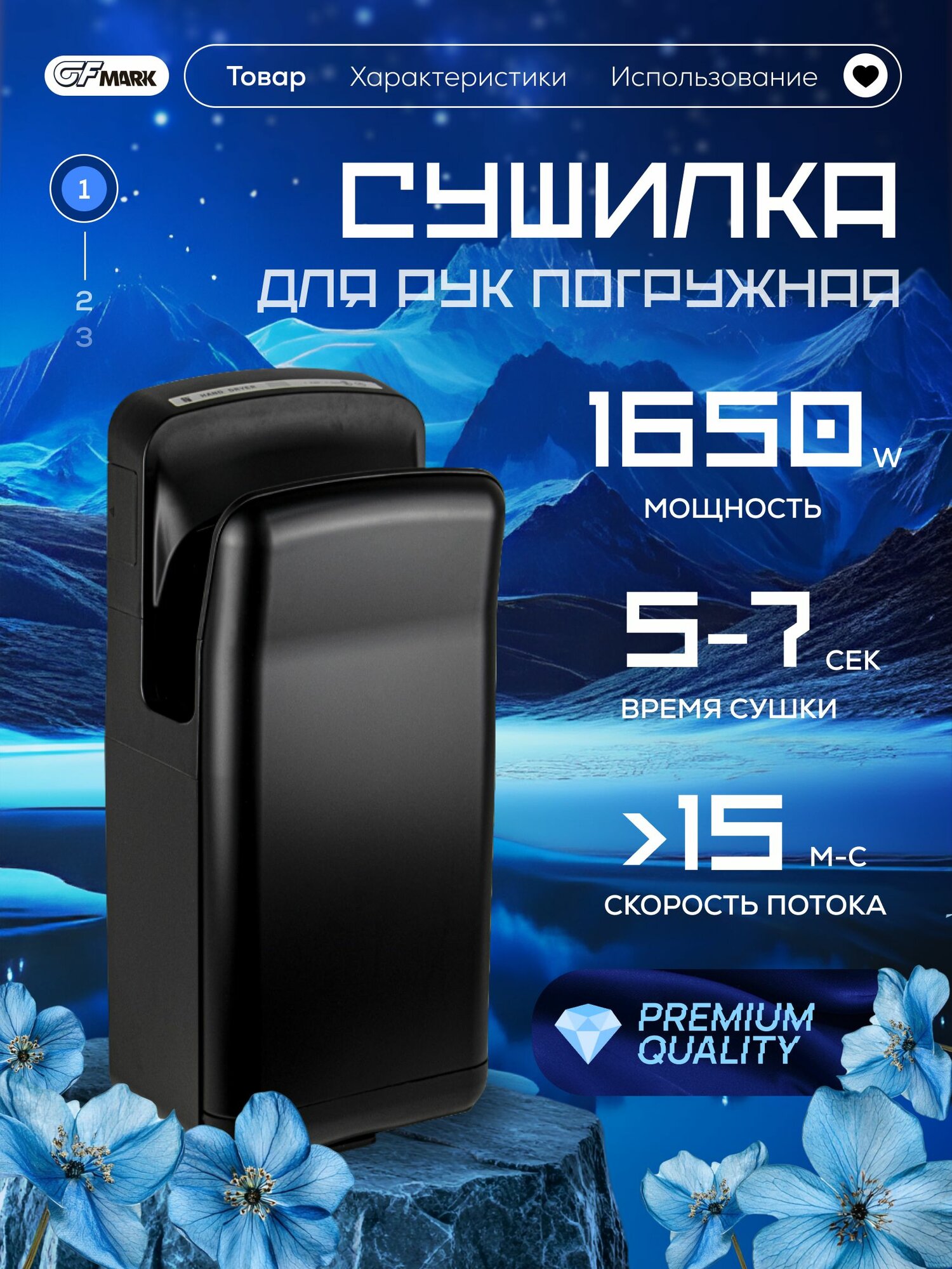 Сушилка для рук погружная GFmark, высокоскоростная, бизнес класса, 1650 вт, корпус пластик АБС, цвет чёрный: сравнение цен, характеристики, фото, актуальное наличие и цены.