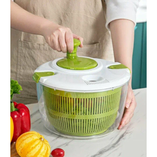 Ручная сушилка для зелени и салата станет отличным помощником в приготовлении ваших любимых блюд для здорового питания. Больше не надо ждать, пока высохнут листья салата, или пытаться высушить их бумажными полотенцами. Теперь у вас есть механическая центрифуга для зелени, которая быстро и бесхлопотно высушит все, что нужно для витаминных салатов и фруктовых десертов. После того, как вы вымоете овощи, зелень, фрукты или ягоды, положите их в дуршлаг, поместите его в прозрачную миску и закройте крышку. Фиксаторы предотвращают ее произвольное открытие, а резиновое кольцо на основании чаши не позволяет скользить по кухонному столу. Вращайте ручку сушилки в течение нескольких секунд для того, чтобы убрать с продуктов воду. Механизм центрифуги прост: под действием вращения зелень, овощи и фрукты бережно освобождаются от влаги, которая скапливается на дне емкости. Чтобы слить жидкость, не обязательно открывать сушилку: вы легко сделаете это через специальное отверстие в крышке. Также этот универсальный прибор позволяет легко и быстро распределить заправку для салата за счет равномерного вращения. В прозрачной чаше можно стильно подавать на стол фрукты, овощи и салаты. Используйте емкость с крышкой в качестве контейнера для хранения, а внутренняя корзинка послужит отличным дуршлагом. В сушилке удобно размораживать продукты из морозильной камеры: просто выложите их, накройте крышкой, и через несколько часов слейте лишнюю жидкость - так сохранятся все питательные вещества. Этот замечательный кухонный гаджет будет незаменим не только при приготовлении свежих салатов, но и для сушки нарезанной картошки, чтобы сделать домашний картофель фри, или для жарки цукини и баклажанов, как это делают в ресторанах. Особенно полезна карусель для сушки зелени будет на даче и дома в сезон сбора урожая: с ее помощью вы подготовите кабачки, грибы, клубнику, вишню, а также укроп, петрушку и другие любимые травы для качественной заморозки. Легкая внутренняя корзина будет удобна для сбора плодов в саду и огороде. Ручная сушилка - это прекрасный подарок для мамы, бабушки, жены, подруги, сестры на новоселье и любой семейный праздник.