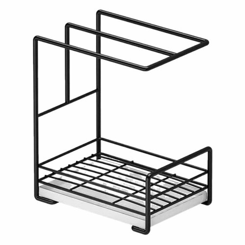 Двухцелевой дизайн сушилки позволяет использовать верхнюю полку для подвешивания полотенец и посуды, а нижнюю - для хранения чистящих средств. Это обеспечивает максимальную эффективность использования пространства и помогает поддерживать чистоту на кухне.