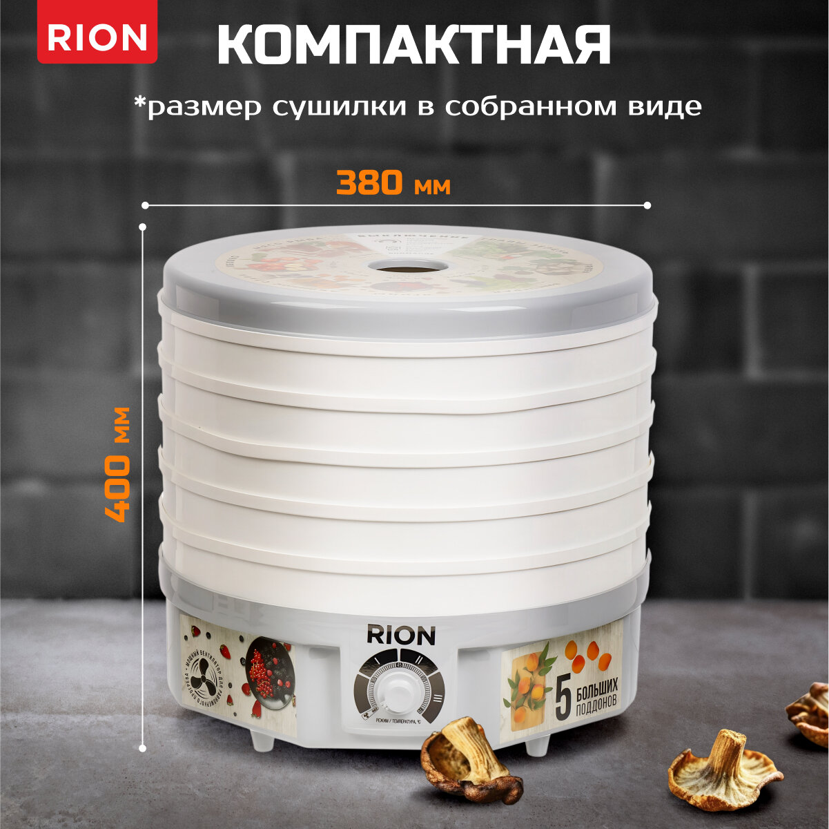 Сушилка для овощей, фруктов Rion, R-05D0, 5 поддонов, 520 Вт, белая