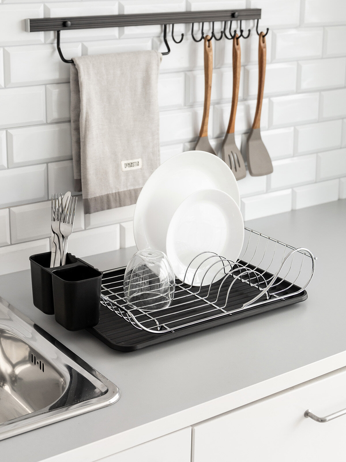 Купить Сушилка кухонная с поддоном DeNASTIA металл/полипропилен, 49x32x12см, цвет черный/серебристый с доставкой по всей России. Сушилка кухонная с поддоном DeNASTIA металл/полипропилен, 49x32x12см, цвет черный/серебристый: сравнение цен, характеристики, фото, актуальное наличие и цены.