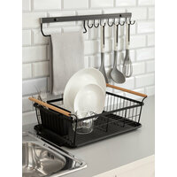 Сушилка для посуды 2-х ярусная черная металлическая с поддоном