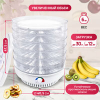 | Дополнительная информация | 6 съёмных прозрачных поддонов, подходит для сушки овощей, фруктов, рыбы, трав |