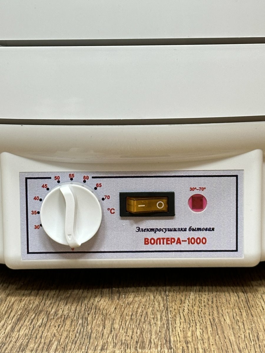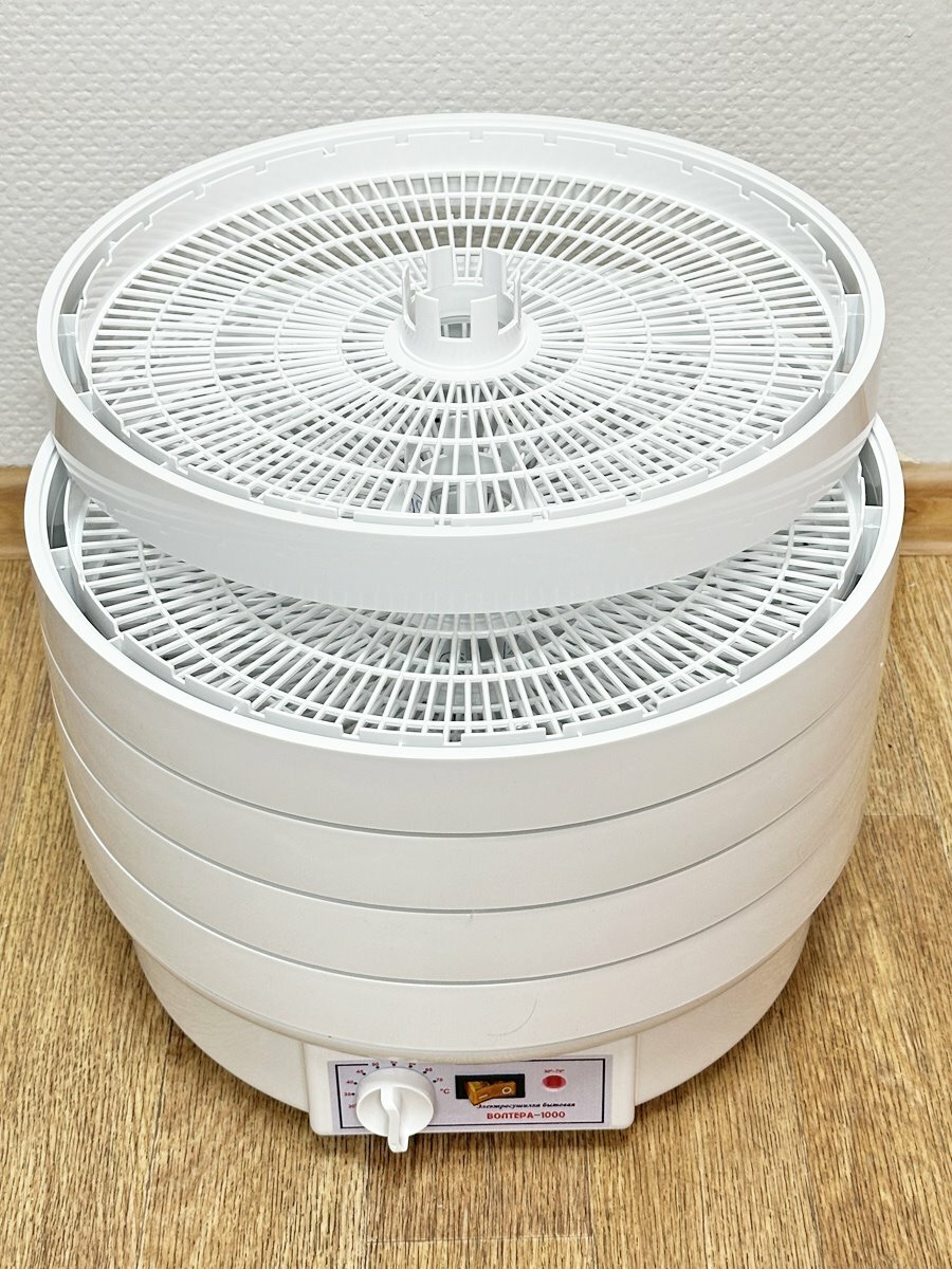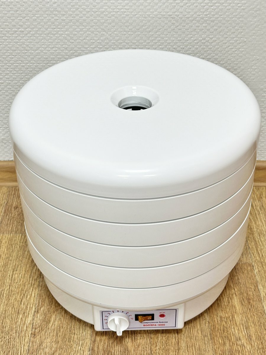 Домашняя сушилка Волтера 1000 люкс для овощей, фруктов, грибов, мяса – один из самых удобных и безопасных сушильных аппаратов. Мощность 1000 Вт, плавная регулировка температуры от 30 до 65 °С. Позволяет варьировать количество поддонов от 5 до 15 шт, нагрузка на 1 поддон - до 1 кг. Сушит быстро и равномерно, запахи не смешиваются. В комплекте 5 поддонов, 1 сплошной лист для пастилы, а также 1 сетчатый лист для трав, чая и ягод.
