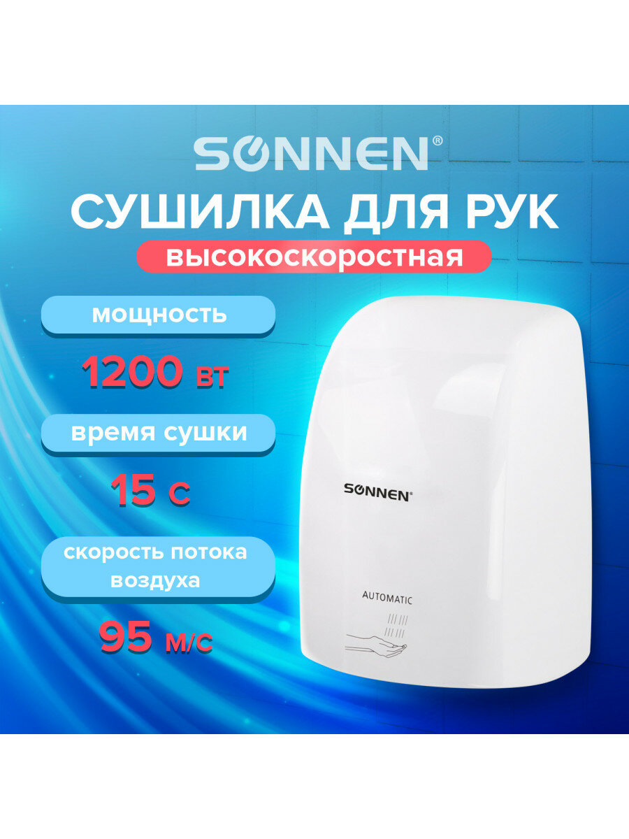 Сушилка высокоскоростная для рук SONNEN HD-FL-2009, 1200 Вт, пластиковый корпус, белая, 607959: сравнение цен, характеристики, фото, актуальное наличие и цены.