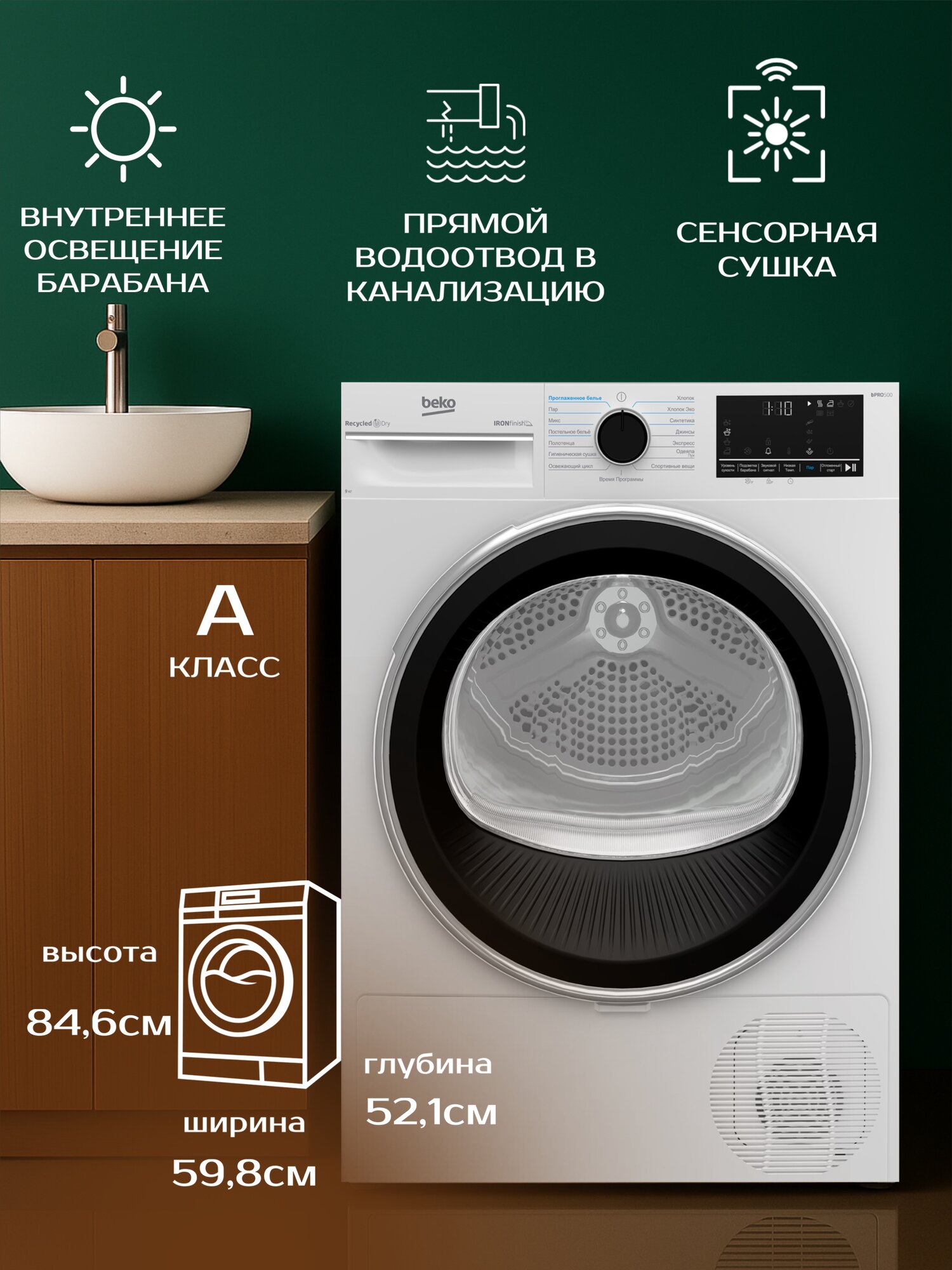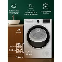 Сушильная машина Beko B5T69233 позаботится о бережной сушке вещей после их стирки. Технология Heat Pump с тепловым насосом объединяет конденсационный и вентиляционный способы отвода влаги. Технология Optisense автоматически подбирает цикл сушки на основе показателей интеллектуальных датчиков измерения влажности и температуры. Модель оснащена 15 программами и барабаном из нержавеющей стали, который вмещает до 9 кг белья. Реверсивное вращение и обработка паром уменьшают количество складок.
