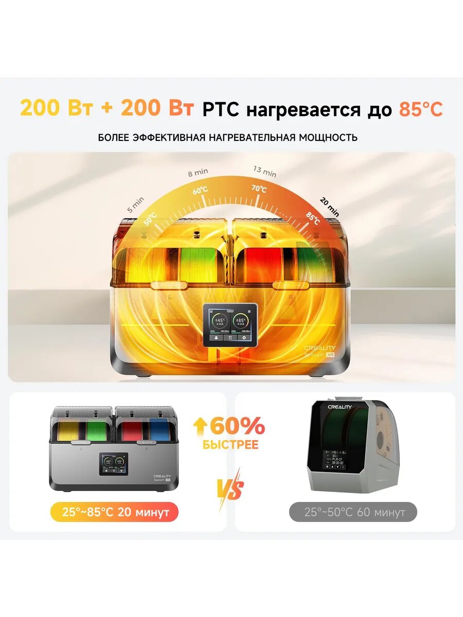 Сушильная машина Creality Space Pi X4 с нагревом горячим воздухом на 360 , 4 катушки, двойной независимый нагрев: сравнение цен, характеристики, фото, актуальное наличие и цены.