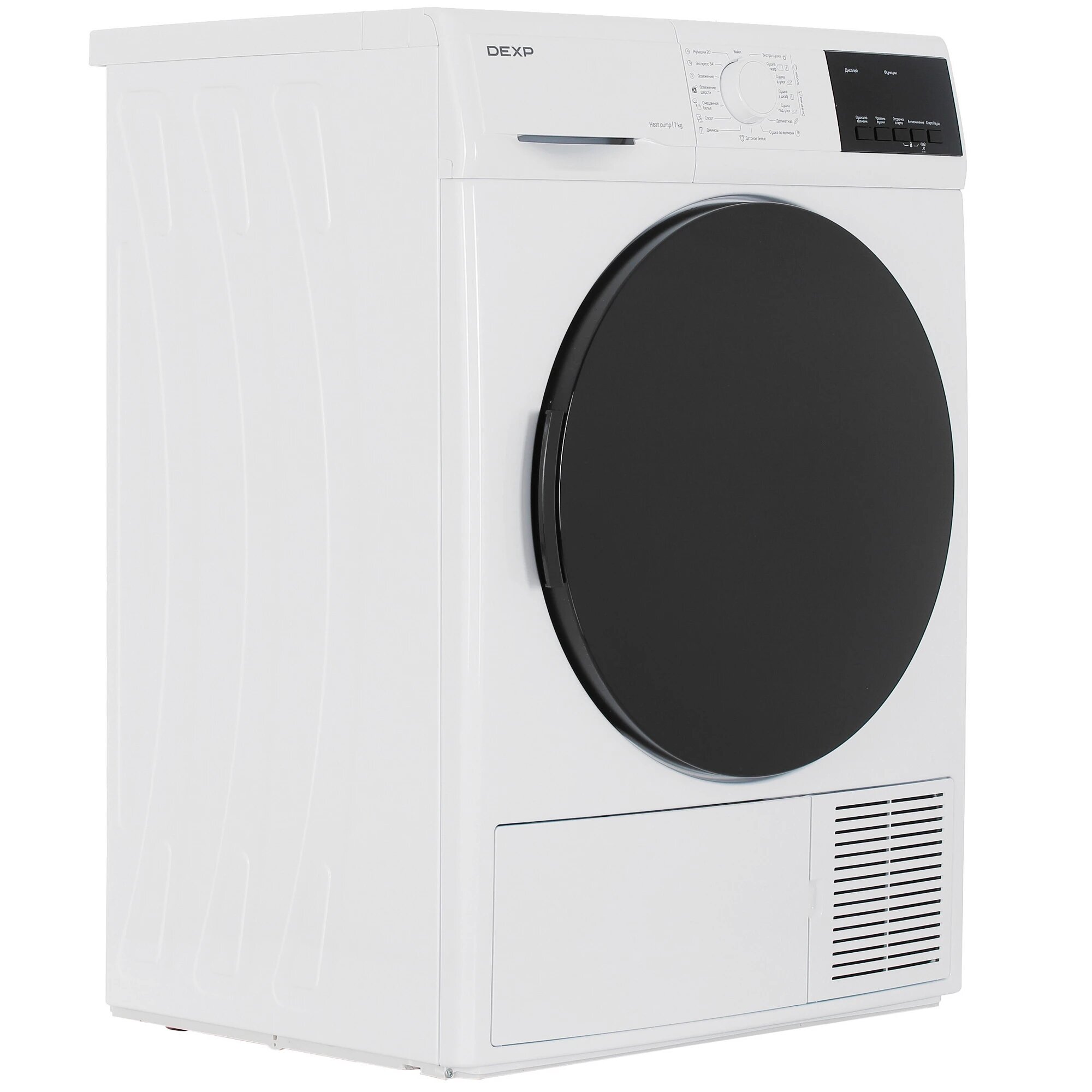 Сушильная машина DEXP DM-F7DVL/WB вмещает до 7 кг белья. Конденсационная технология эффективно удаляет влагу и бережно воздействует на ткани. В модели реализованы 15 программ. На панели управления расположены кнопки, дисплей и поворотный механизм. Функция блокировки устраняет случайное изменение установленных настроек.