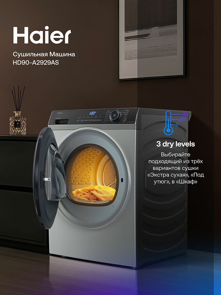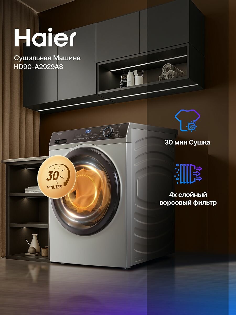 Купить Сушильная машина для белья Haier HD90-A2929AS 9 кг, с тепловым насосом, с фронтальной загрузкой, серебристый с доставкой по всей России. Сушильная машина для белья Haier HD90-A2929AS 9 кг, с тепловым насосом, с фронтальной загрузкой, серебристый: сравнение цен, характеристики, фото, актуальное наличие и цены.