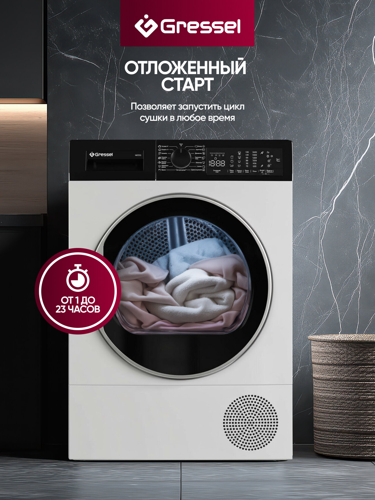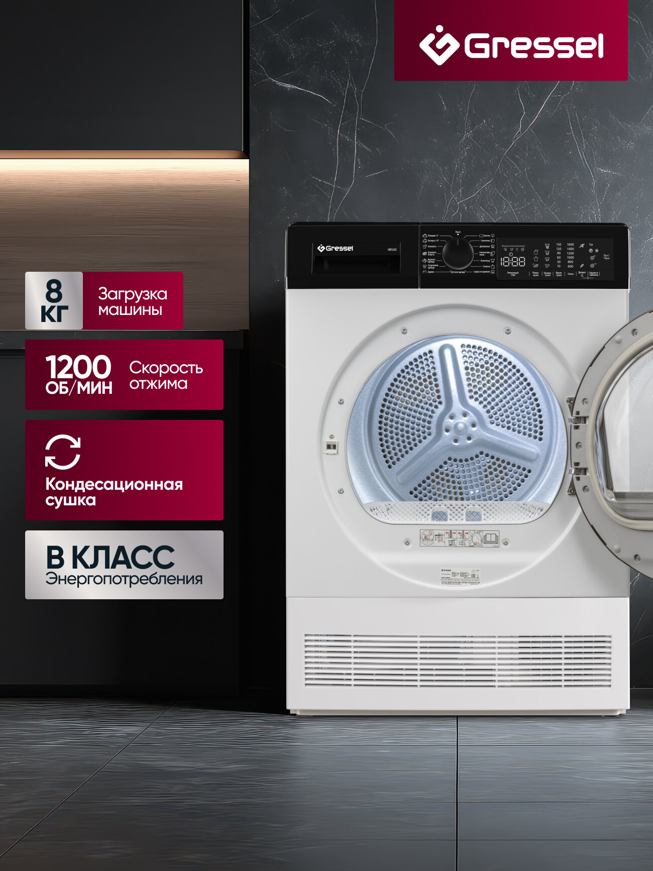 Купить Сушильная машина GRESSEL UWD605 8 кг, сенсорный дисплей, 1200 об/мин, 15 программ, подсветка барабана, белый с доставкой по всей России. Сушильная машина GRESSEL UWD605 8 кг, сенсорный дисплей, 1200 об/мин, 15 программ, подсветка барабана, белый: сравнение цен, характеристики, фото, актуальное наличие и цены.