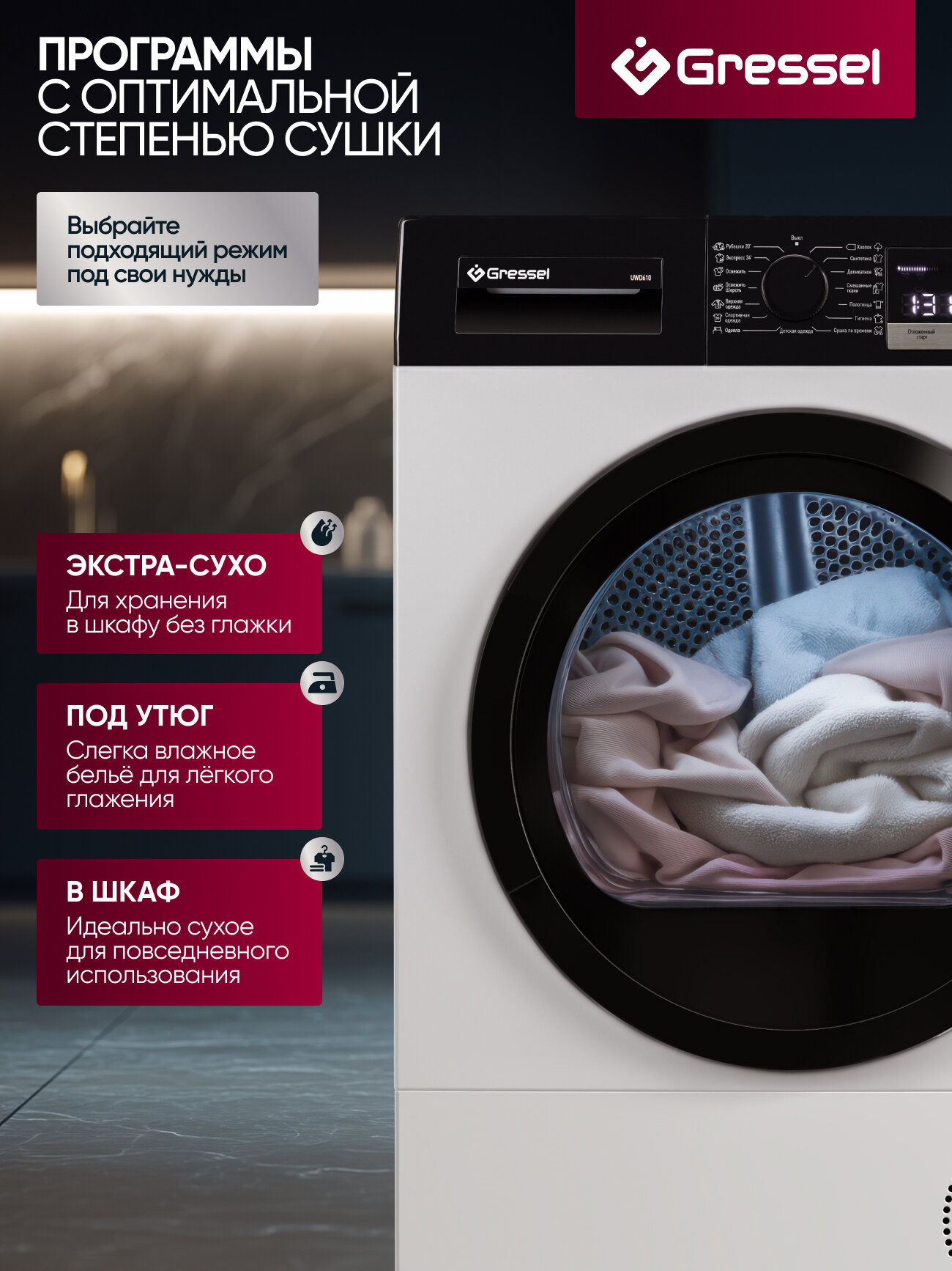 Купить Сушильная машина Gressel UWD610, 8 кг, тепловой насос, 15 программ с доставкой по всей России. Сушильная машина Gressel UWD610, 8 кг, тепловой насос, 15 программ: сравнение цен, характеристики, фото, актуальное наличие и цены.