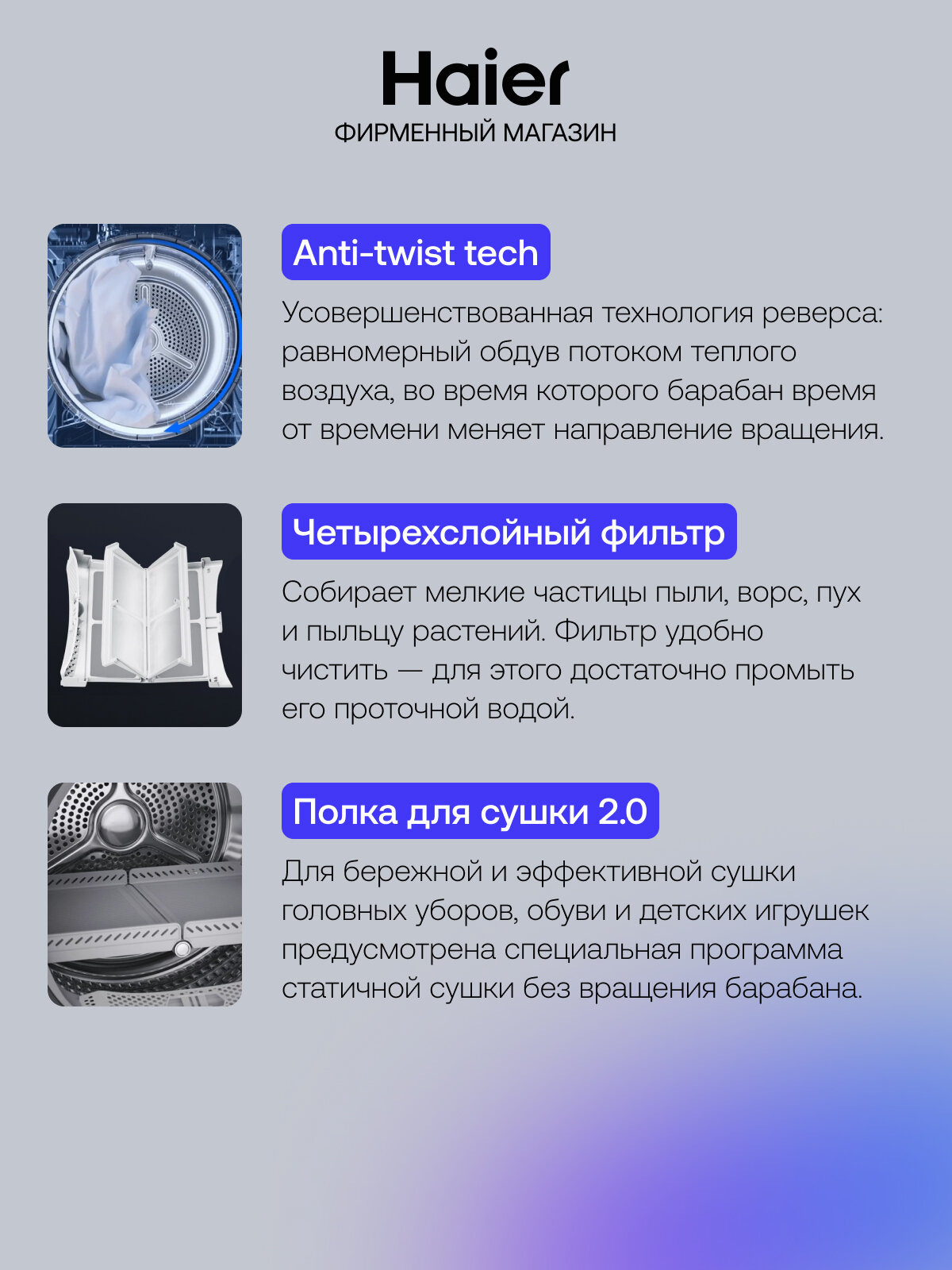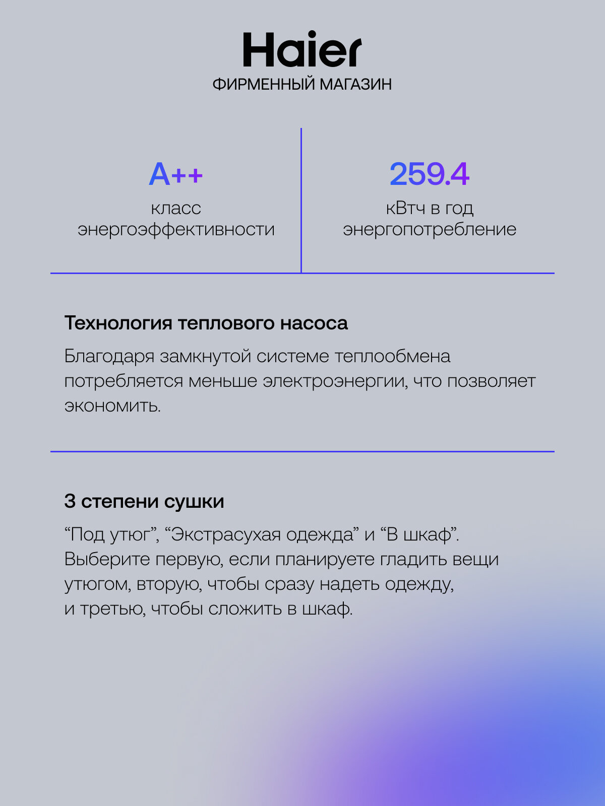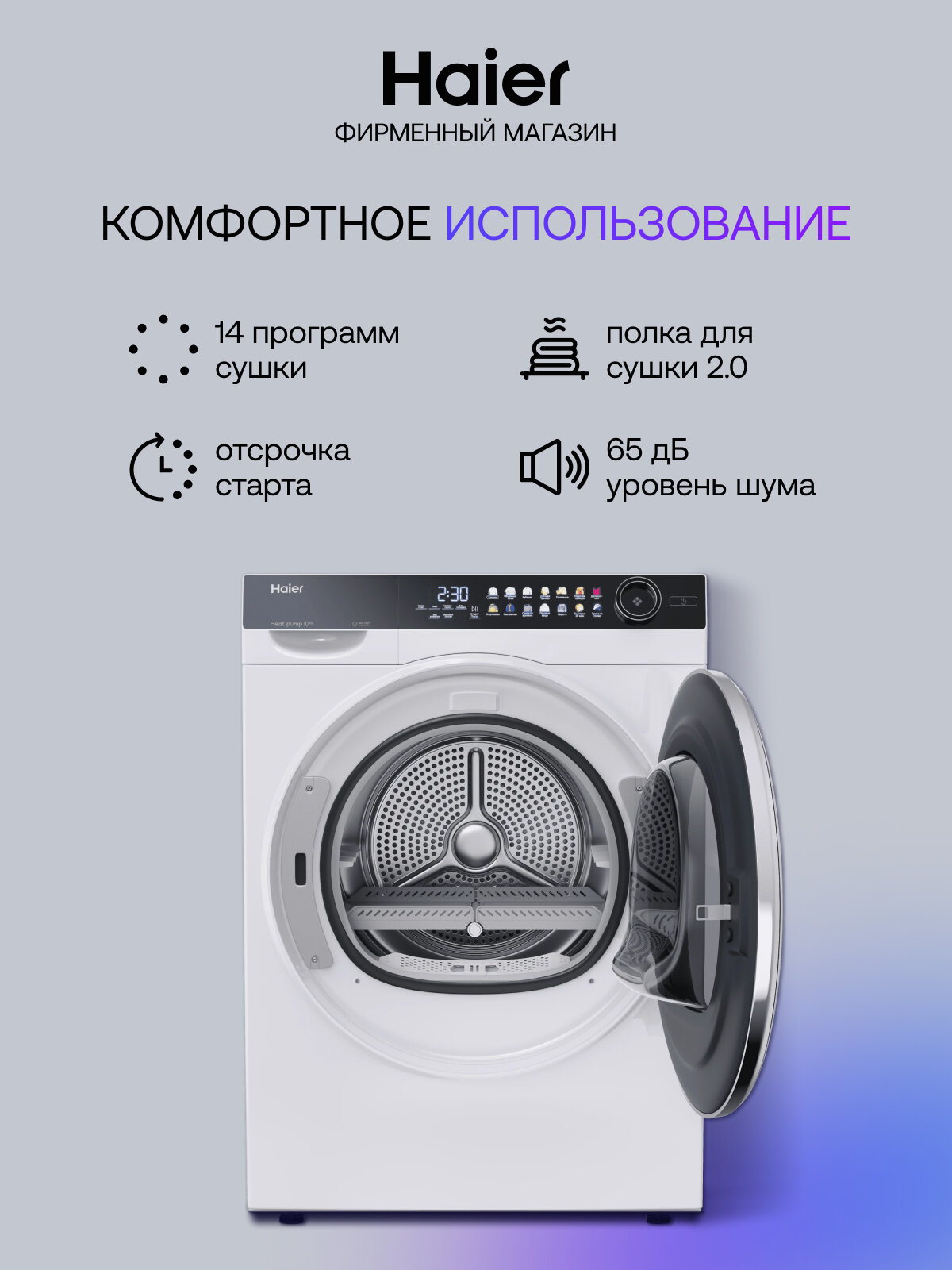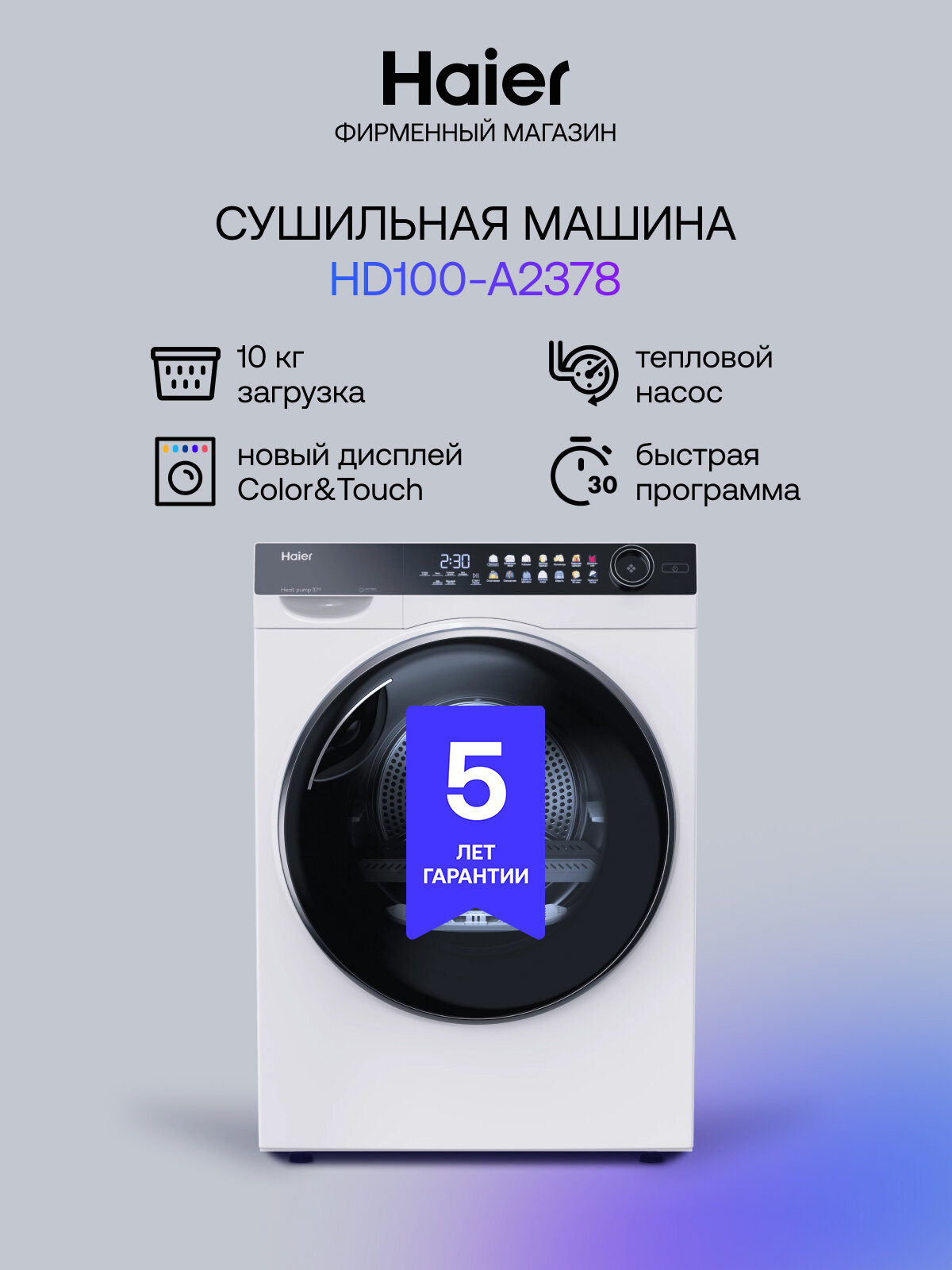 Сушильная машина Haier HD100-A2378 - это надежный и функциональный помощник для быстрой и бережной сушки белья.