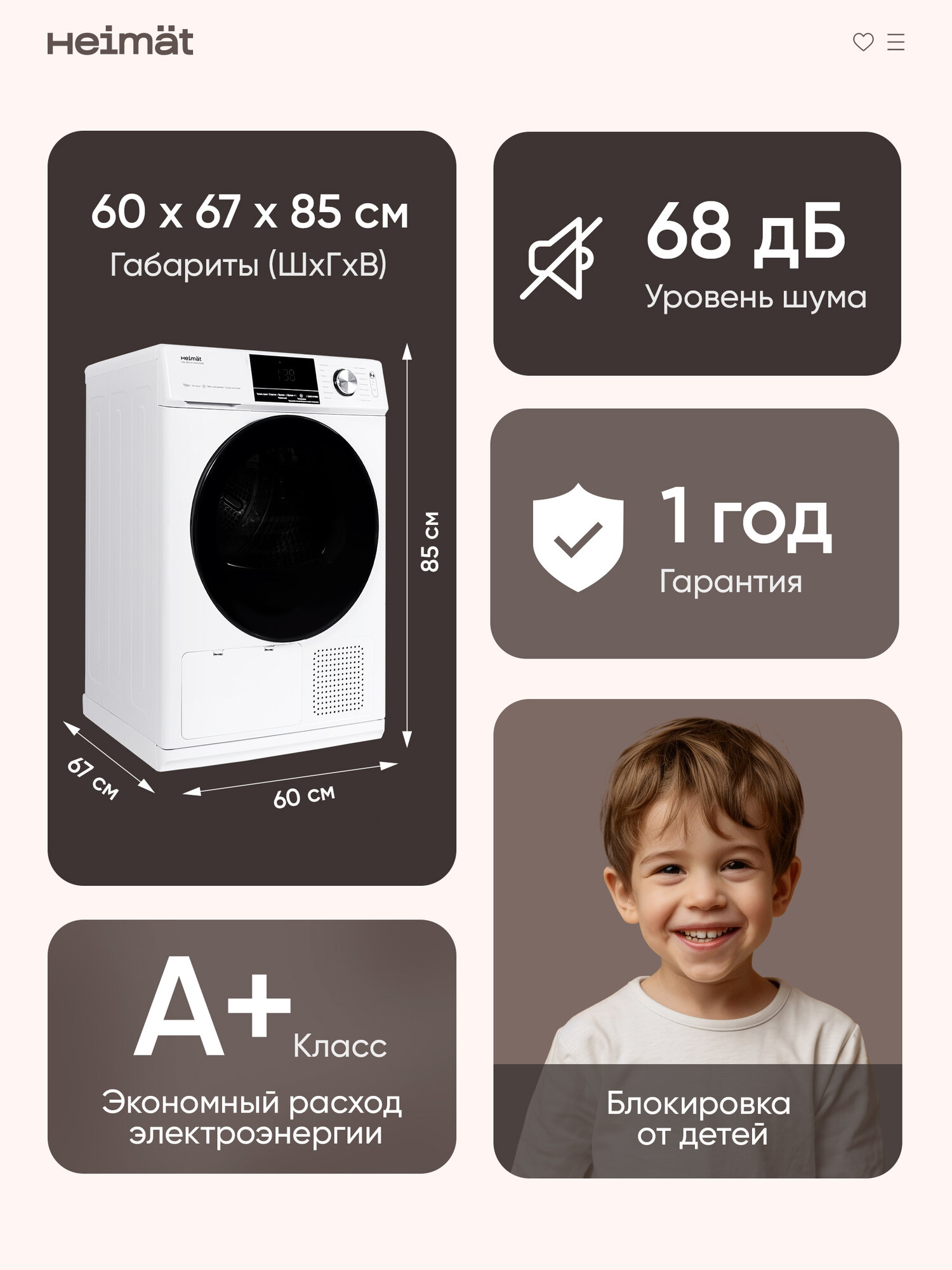 | Особенности конструкции | подсветка барабана, Низкий уровень шума при работе, Рельефная поверхность барабана, Тепловой насос |