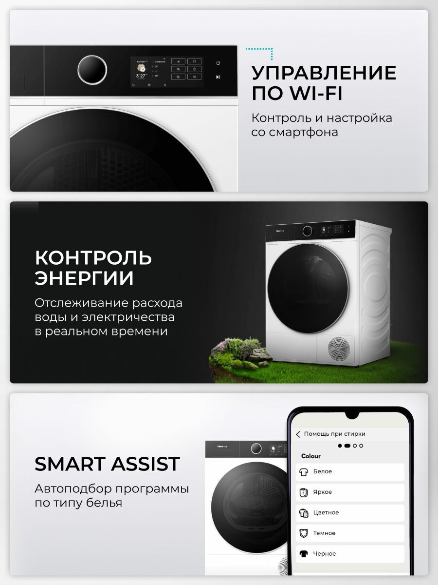 Купить Сушильная машина Hisense DH5I104UW2B, 10 кг, 18 программ, управление по Wi-Fi, тепловой насос, белый с доставкой по всей России. Сушильная машина Hisense DH5I104UW2B, 10 кг, 18 программ, управление по Wi-Fi, тепловой насос, белый: сравнение цен, характеристики, фото, актуальное наличие и цены.