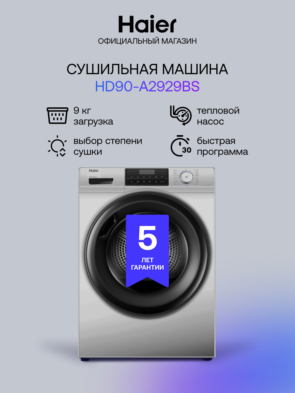 Выбирая сушильную машину Haier HD90-A2929BS, вы получаете современное, экономичное и эффективное решение для сушки белья после стирки.