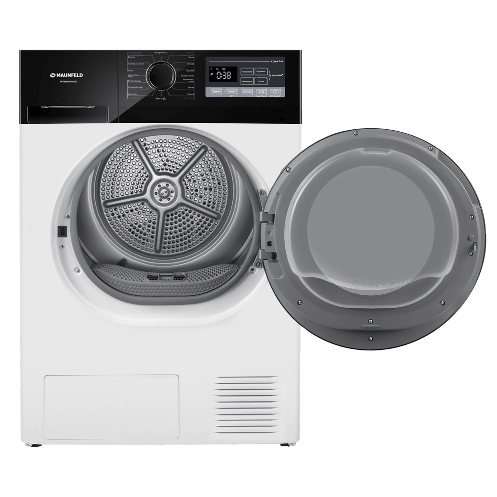 Умная электроника берёт рутину на себя: датчик влажности сам подбирает продолжительность цикла, а большой дисплей делает управление наглядным — можно отслеживать этапы, корректировать температуру и при необходимости сокращать время. Режим «Отложенный старт» (до 24 часов) поможет подстроить сушку под ваш график, а «Антисмятие» избавит от лишнего глажения.