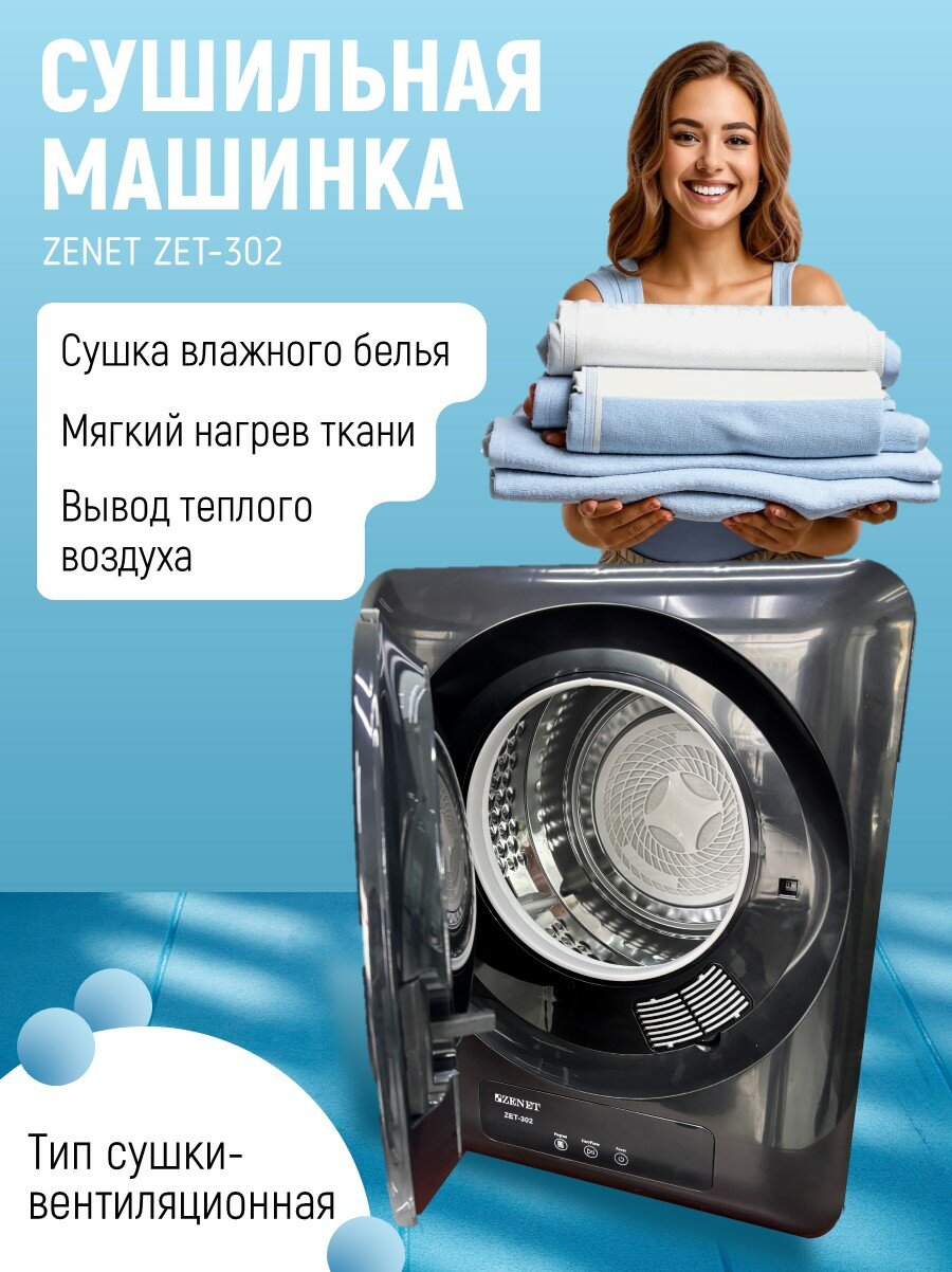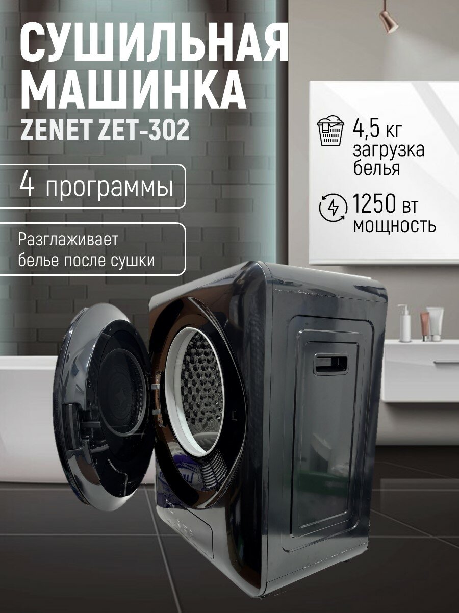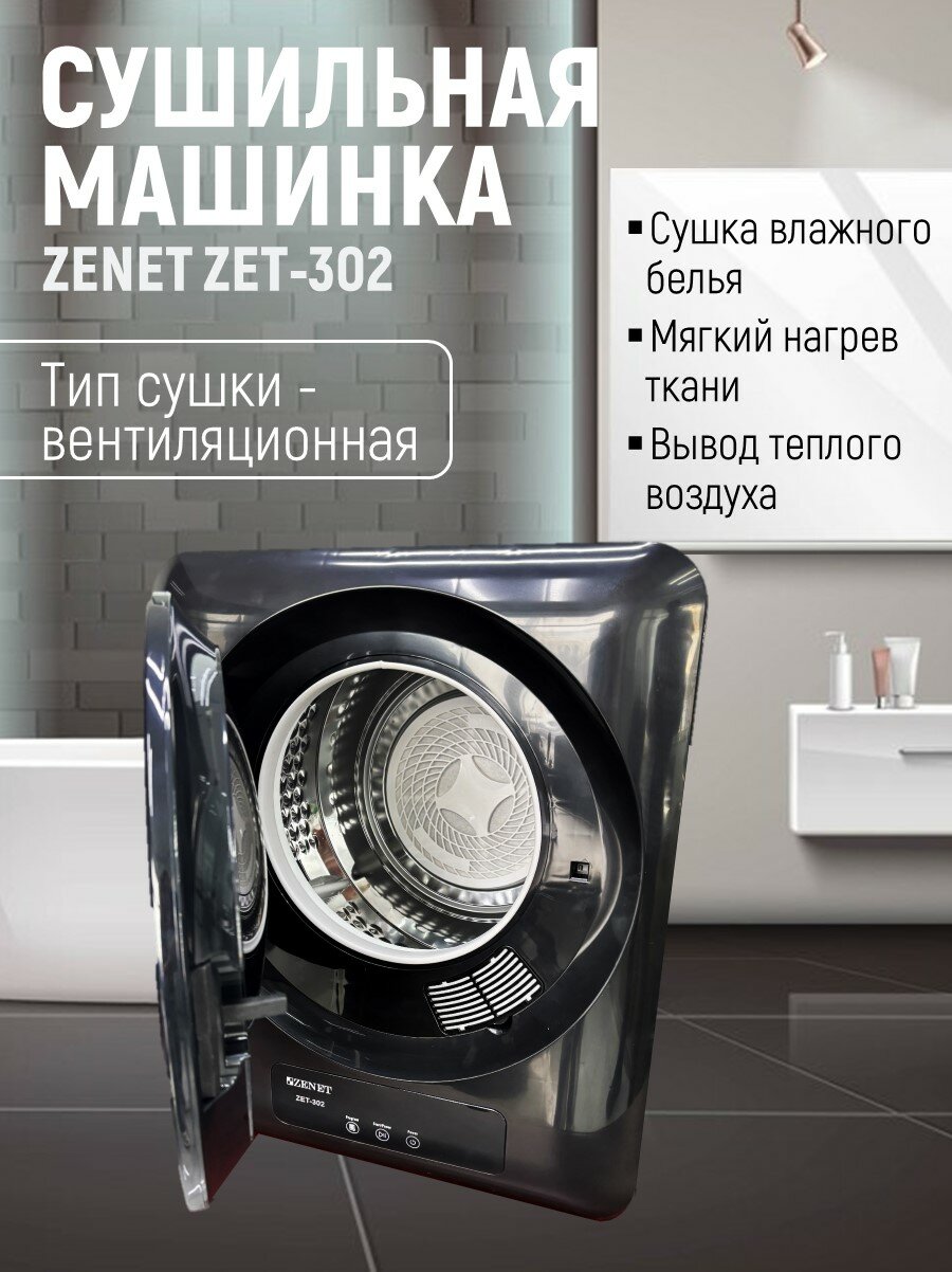 Машина для сушки белья Zenet ZET-302, компактная, 4 кг, с турбосушкой, черная: сравнение цен, характеристики, фото, актуальное наличие и цены.