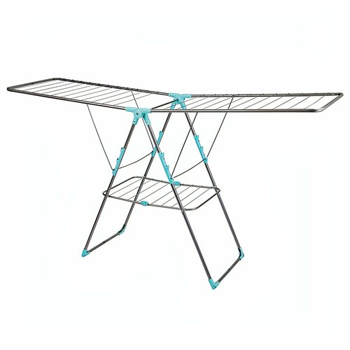 ВСЁ продумано Металлическая конструкция прочная и надёжная, от появления коррозии защищает эмалевое покрытие. В нижней части есть дополнительная полочка, на которую будет удобно складывать высушенное бельё и вешать какие-то мелкие вещи, например, носки или носовые платки. На ножках есть накладки, предотвращающие скольжение приспособления по полу и уберегающие его от царапин. В сложенном положении габариты сушки 101 х 51,5 х 8 см – она не займёт много места.