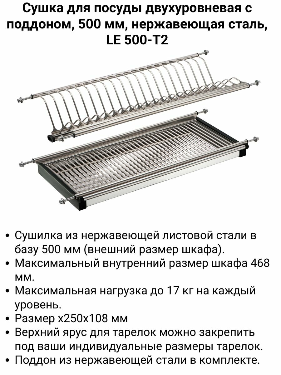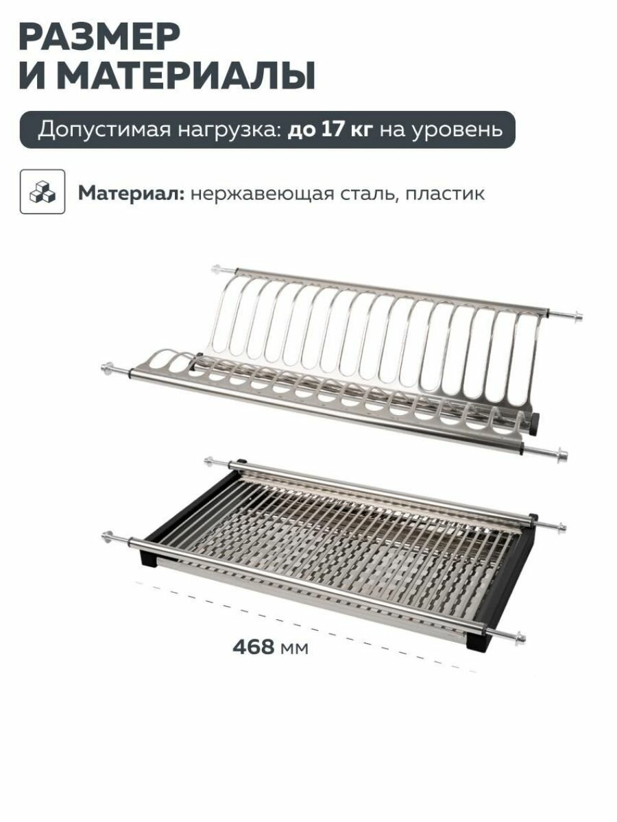 Сушка для посуды двухуровневая встраиваемая в шкаф с нержавеющим поддоном 500 мм, нержавеющая сталь: сравнение цен, характеристики, фото, актуальное наличие и цены.