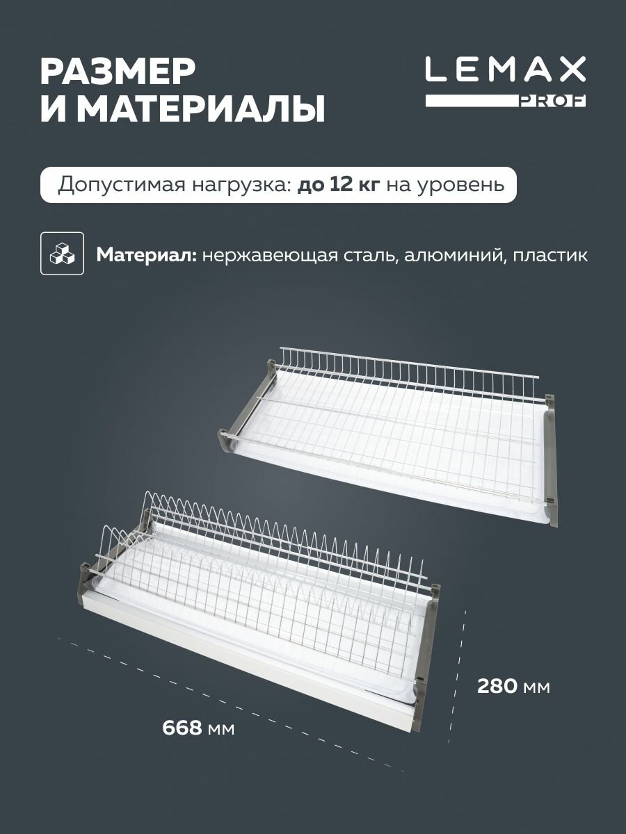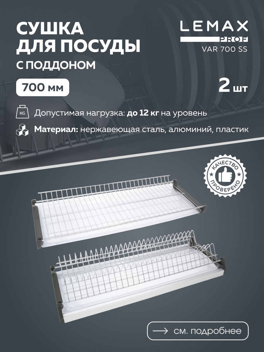 Сушка для посуды двухуровневая Lemax prof / Из нержавеющей стали в шкаф 700 мм / Цвет: хром: сравнение цен, характеристики, фото, актуальное наличие и цены.