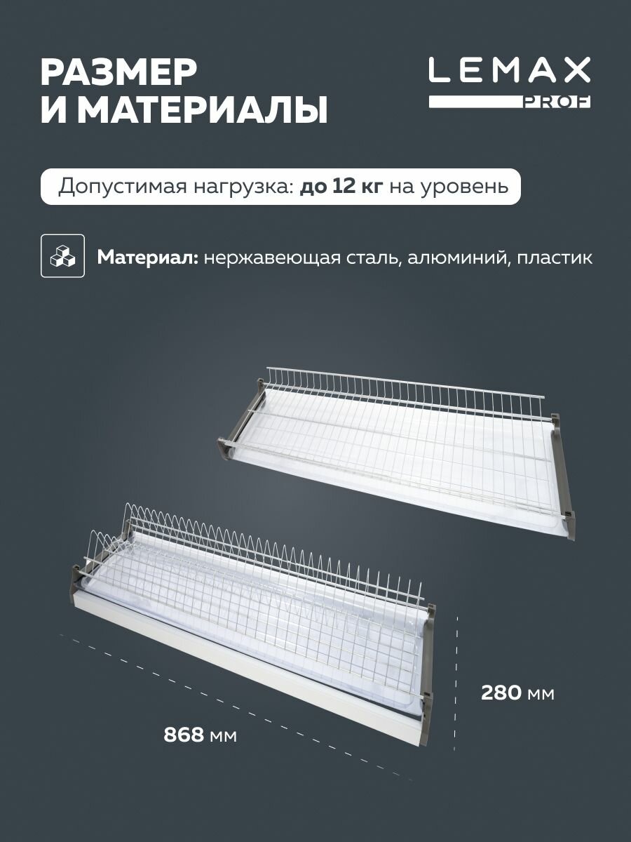 Сушка для посуды двухуровневая Lemax prof / Из нержавеющей стали в шкаф 900 мм / Цвет: хром: сравнение цен, характеристики, фото, актуальное наличие и цены.