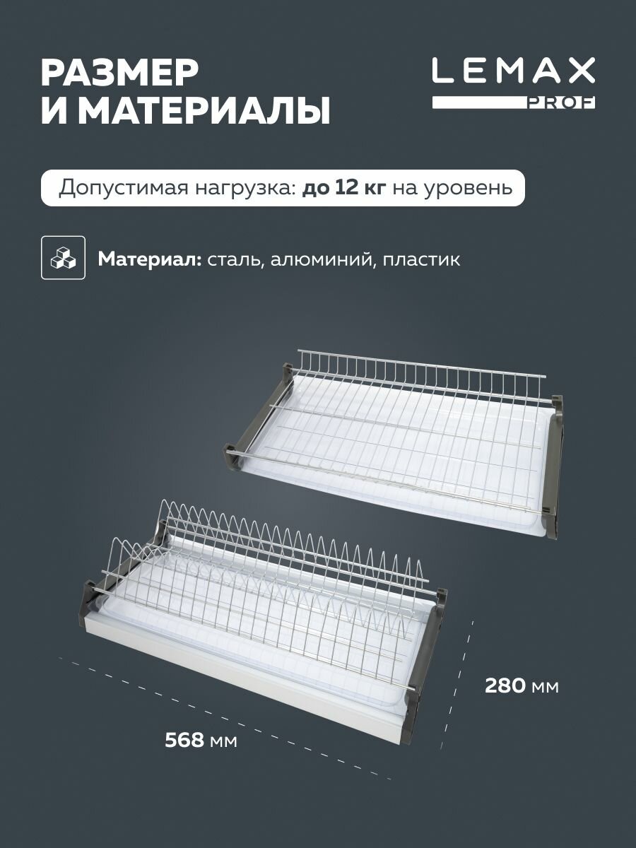Сушка для посуды двухуровневая Lemax prof / С алюминиевым профилем в шкаф 600 мм / Цвет: хром: сравнение цен, характеристики, фото, актуальное наличие и цены.