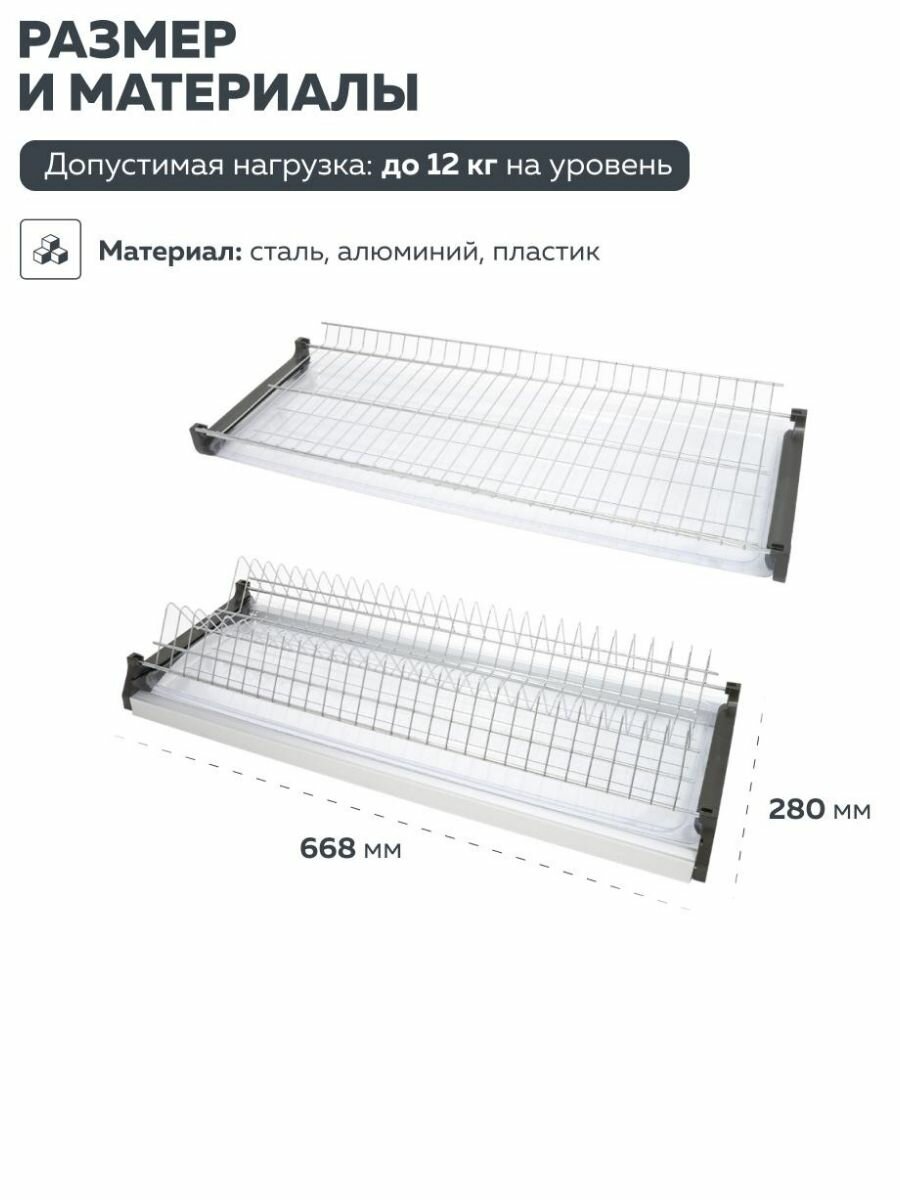 Сушилка для посуды в шкаф 700 мм, с алюминиевой рамкой, цвет хром с 2 поддонами в комплекте: сравнение цен, характеристики, фото, актуальное наличие и цены.