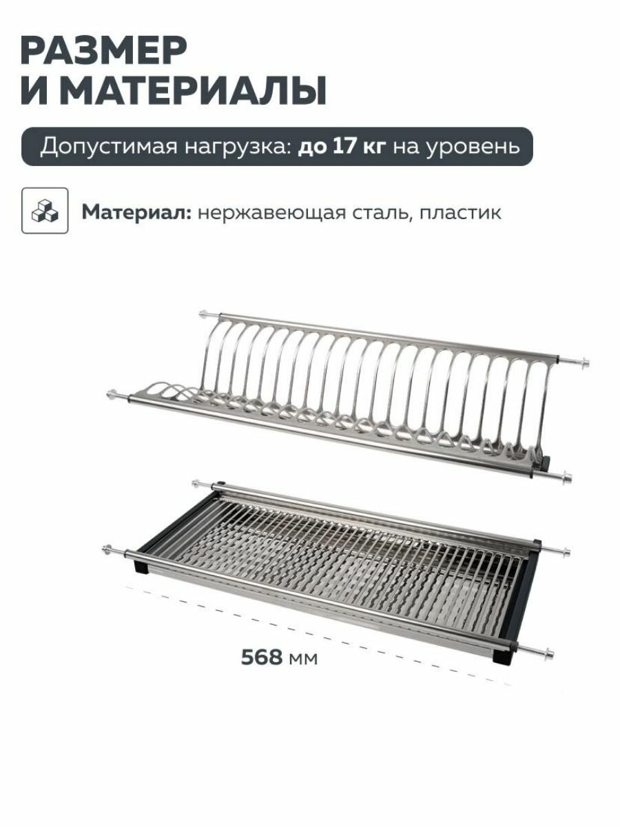 Сушка для посуды двухуровневая Lemax profиз нержавеющей стали / С поддоном в шкаф 600 мм / Цвет: хром: сравнение цен, характеристики, фото, актуальное наличие и цены.