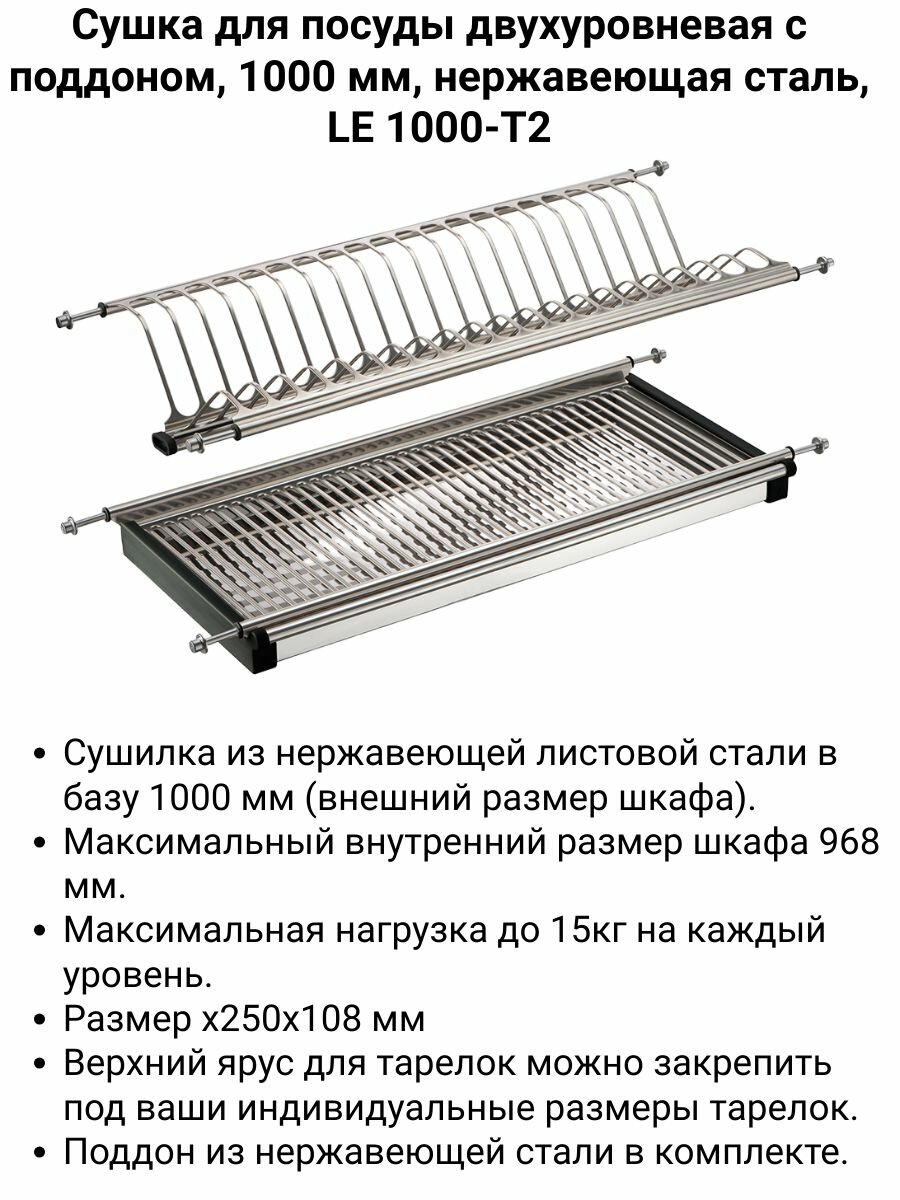 Сушка для посуды двухуровневая встраиваемая в шкаф с нержавеющим поддоном 1000 мм, нержавеющая сталь: сравнение цен, характеристики, фото, актуальное наличие и цены.