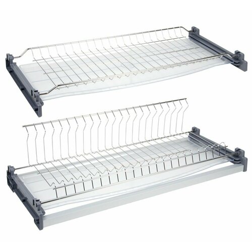 LORA SU06 — двухуровневая сушка для посуды из нержавеющей стали с нижним ярусом L-образной формы для более стабильного удержания разноформатных тарелок. Модель имеет два плотных поддона под каждым уровнем для сбора капель воды, стекающих с посуды. Нижний ярус оснащён поперечным прутком, который препятствует проваливанию маленьких блюдец.