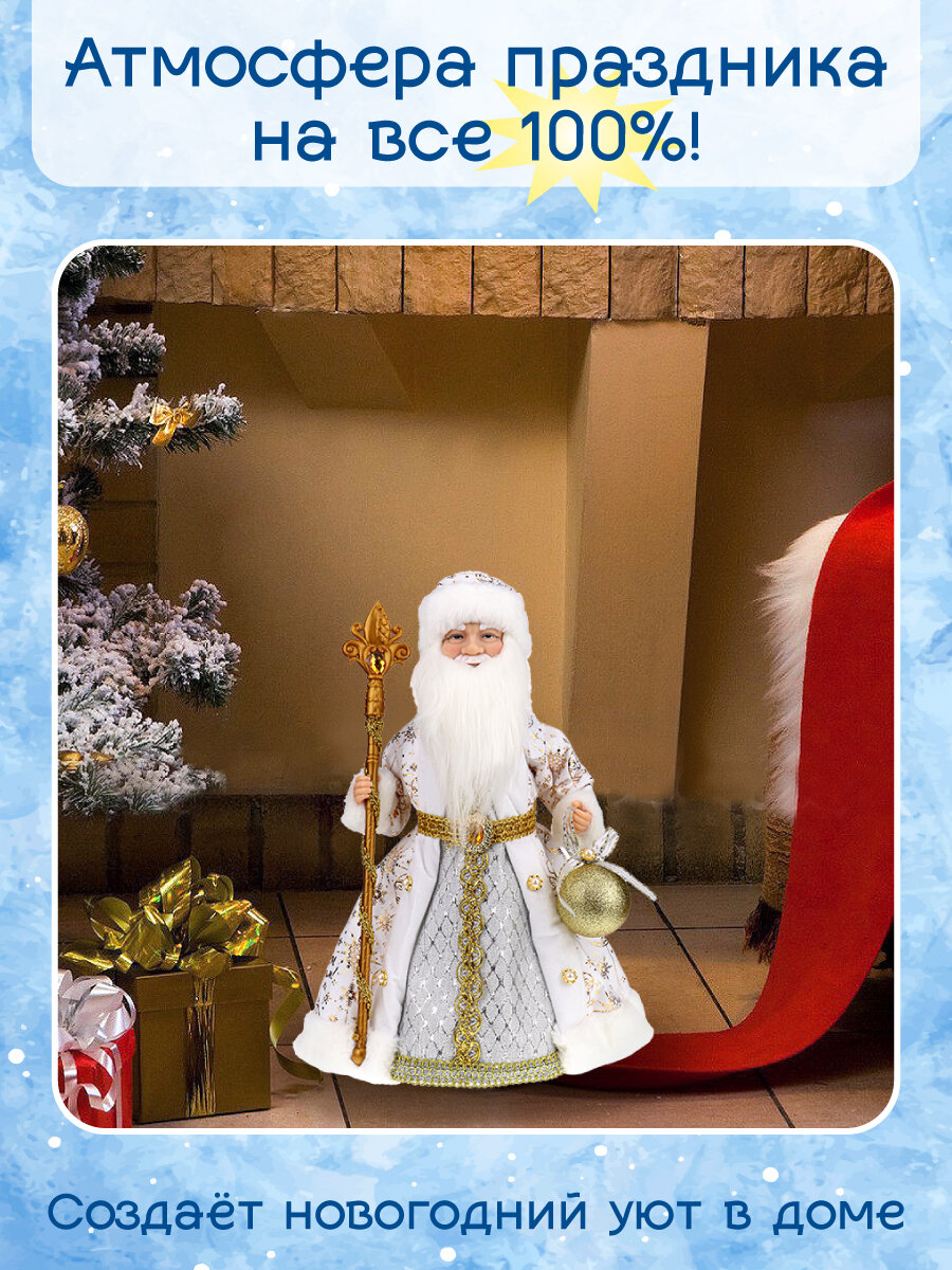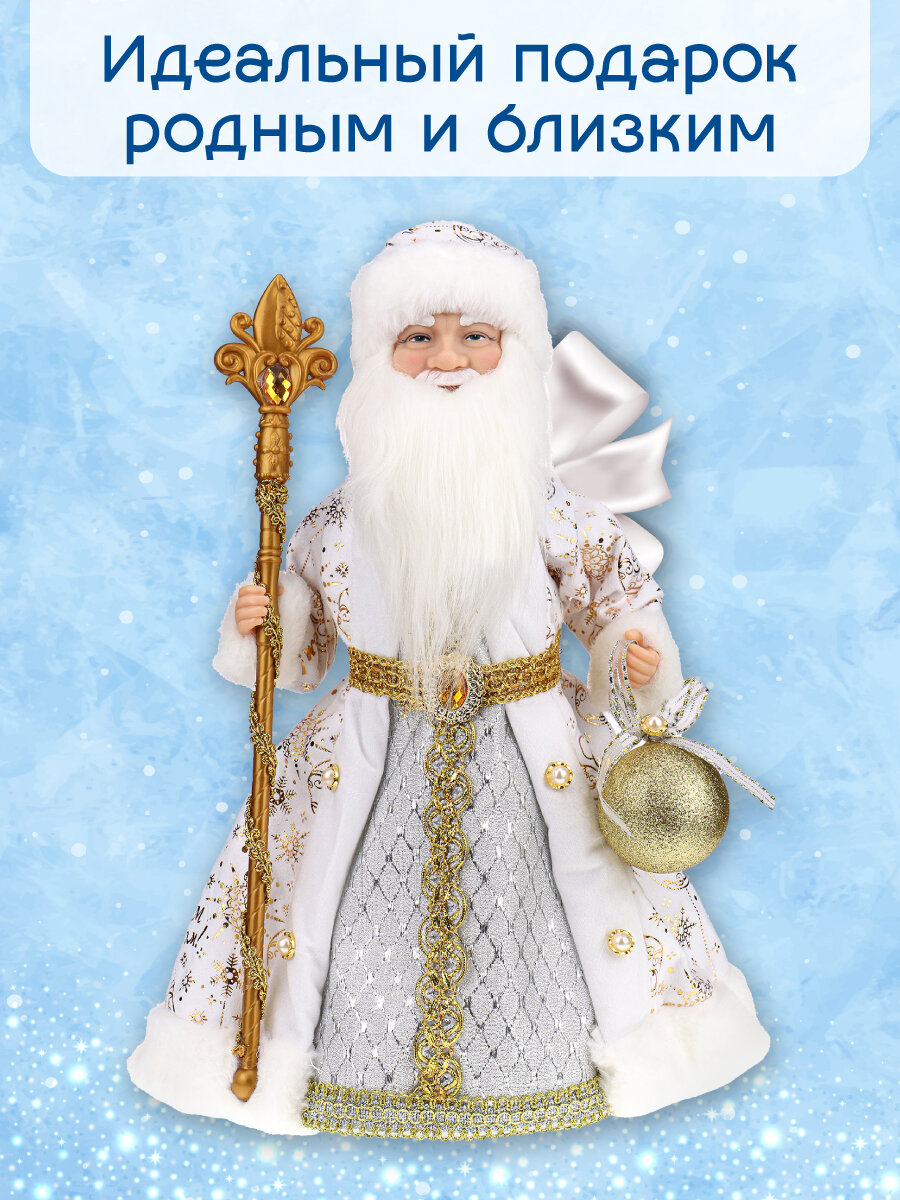 Купить Сувенир музыкальный Дед Мороз в бело-золотой шубе, с мелодией, 40см «собс. разр.» Т-6015 с доставкой по всей России.