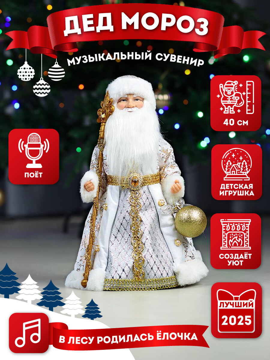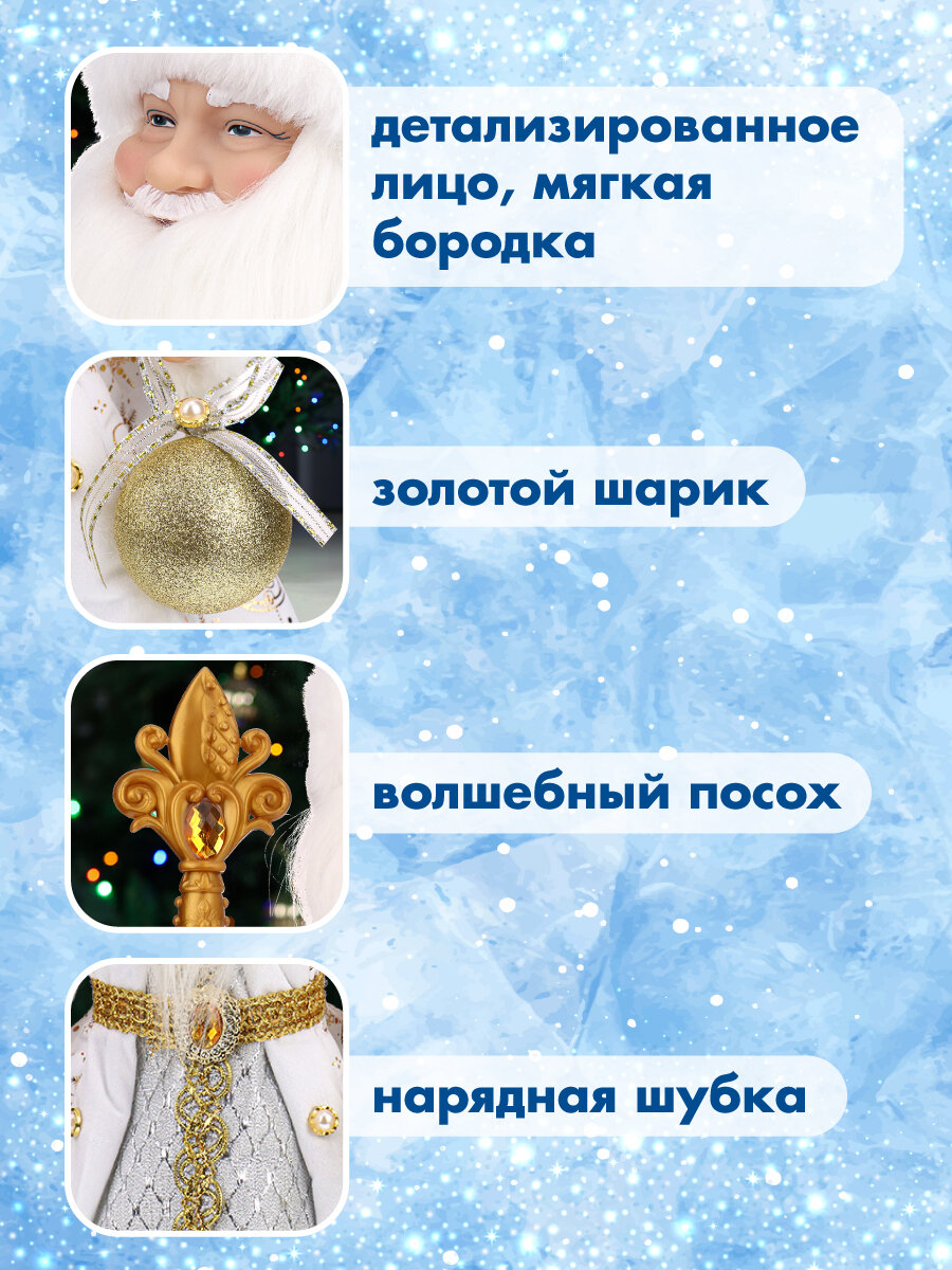 Сувенир музыкальный Дед Мороз в бело-золотой шубе, с мелодией, 40см «собс. разр.» Т-6015: сравнение цен, характеристики, фото, актуальное наличие и цены.
