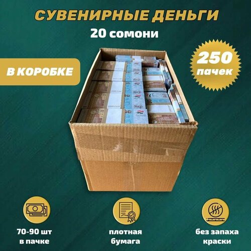 Сувенирные деньги игрушечные, фейковые купюры 20 таджикских сомони , коробка 250 пачек: сравнение цен, характеристики, фото, актуальное наличие и цены.