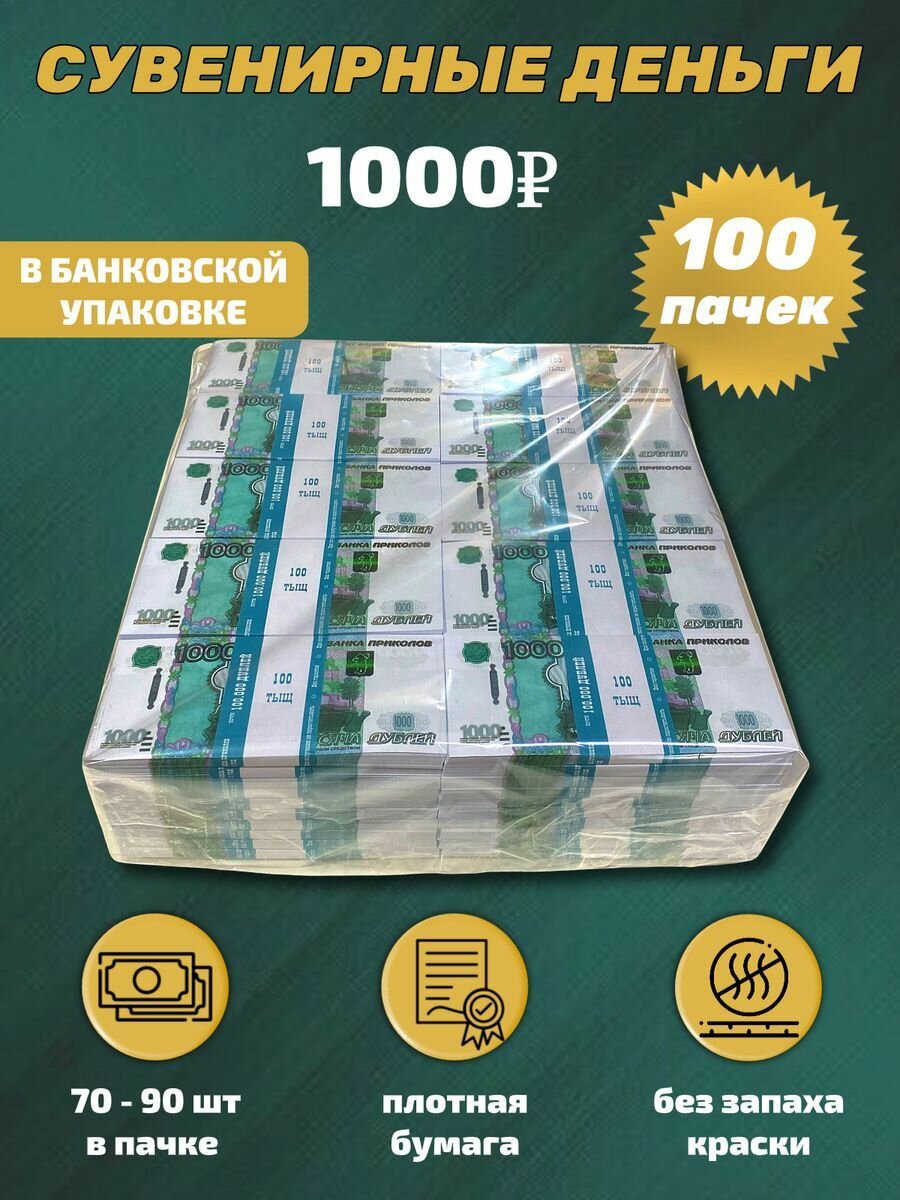 Сувенирные деньги в упаковке 1000 рублей , 100 пачек: сравнение цен, характеристики, фото, актуальное наличие и цены.
