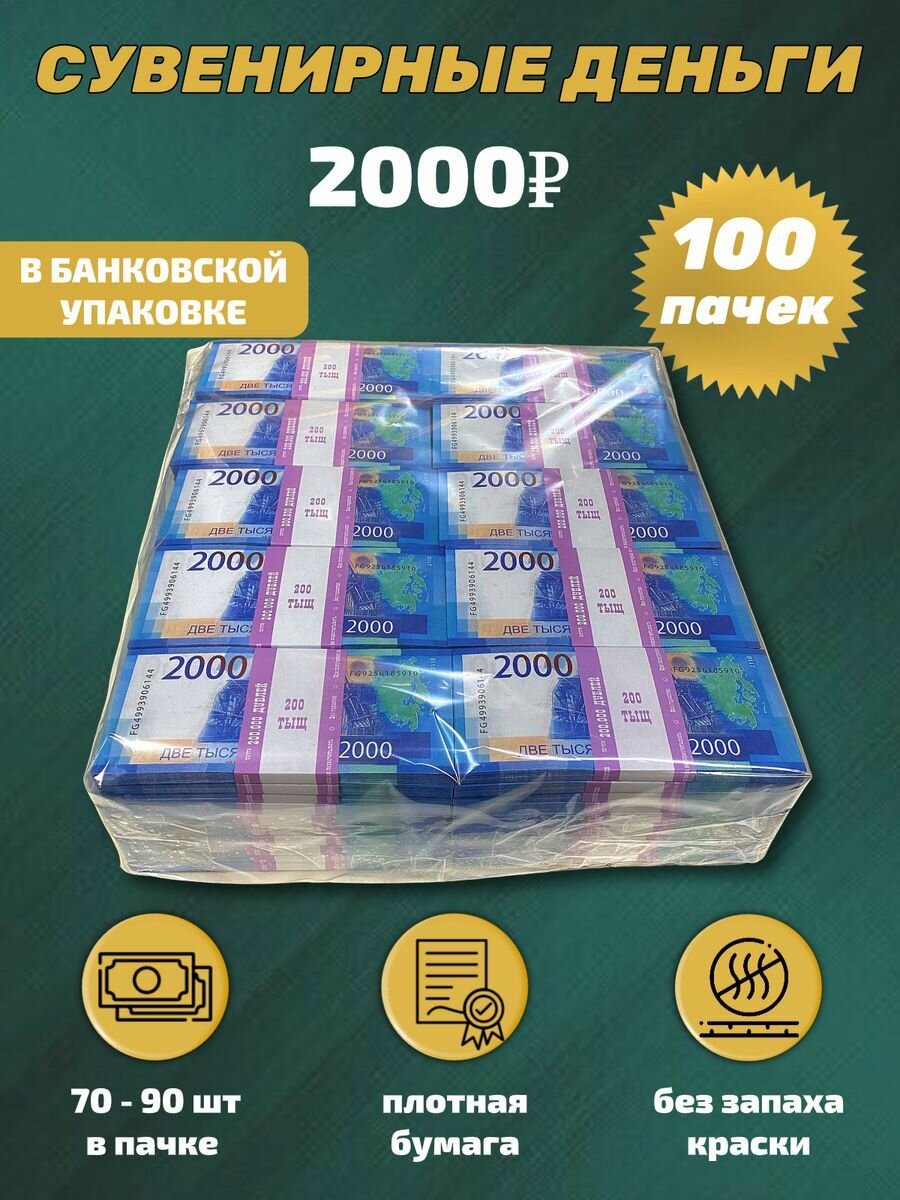 Сувенирные деньги в упаковке 2000 рублей ,100 пачек: сравнение цен, характеристики, фото, актуальное наличие и цены.