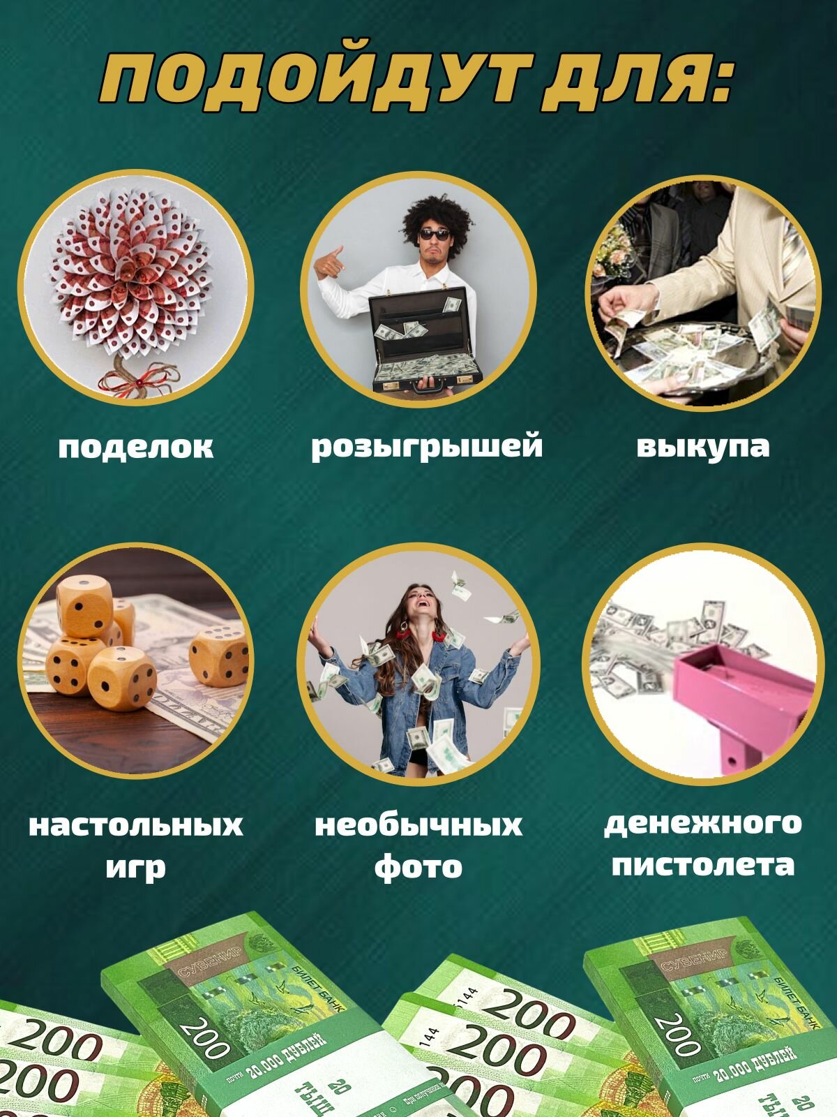 | Дополнительная информация | Хотите порадовать своих близких и друзей ярким и увлекательным подарком? Представляем Вам наши фантастические игрушечные деньги, которые станут настоящей находкой для Вас! Собственное производство и детальная проработка каждого элемента сувенирных денег делает их похожими на настоящие! Наш увлекательный набор фальшивых денег станет идеальным дополнением к различным играм в магазин, ресторан или банк. Реалистичные детали на каждой купюре создают иллюзию настоящих денег, позволяя не только повеселиться, но и развить воображение и фантазию. Каждая купюра яркая и безопасна для использования.Наши игрушечные деньги сделаны из высококачественных материалов,что позволяет сохранять свою привлекательность и целостность, выдерживая многочисленные игры. |