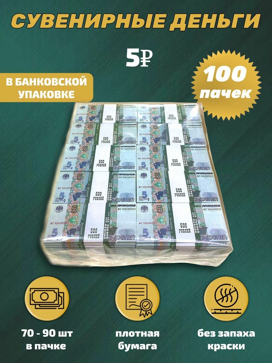 Сувенирные деньги в упаковке номинал 5 рублей ,100 пачек: сравнение цен, характеристики, фото, актуальное наличие и цены.